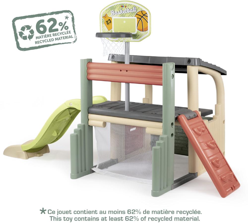 Das Fun Center wird im Smoby Werk in Frankreich produziert und ist Teil der Smoby Life Kollektion, bei der Nachhaltigkeit auf Spielabenteuer trifft. Die Smoby Life Produkte kombinieren auf geschickte Weise recyceltes Material und hochwertiges neues Kunststoffgranulat. Oberstes Ziel ist die Sicherheit unserer kleinen Abenteurer; eine sorgfältige Material-Mischung sorgt für die perfekte Balance zwischen Langlebigkeit, Stabilität und Nachhaltigkeit.