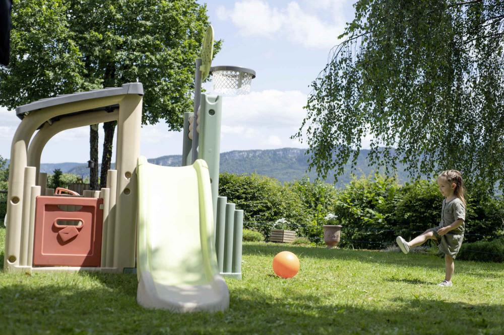 Das Smoby Life Fun Center aus 62% Recycling-Kunststoff bietet zahlreiche Spiel- und Sportmöglichkeiten. Der überdachte Spielhausbereich mit halber Eingangstür bietet viel Platz, um Freunde und Geschwister einzuladen. Ein vielseitig nutzbarer Sportbereich macht das Fun Center zum Lieblingsplatz, ob im Garten oder im Kinderzimmer. Denn mit der stabilen, farbenfrohen Rutsche, einem Fußballtor mit Netz und einem Basketballkorb werden die Kids großen Spaß haben. Die Kletterwand kann gedreht und so auch als Leiter verwendet wenden. Die Rutschlänge beträgt 150 cm und endet in einem breiten Rutschauslauf, der für sanfte Landungen sorgt. Der besondere Clou für heiße Sommertage: die Rutsche lässt sich mit ganz leicht in eine Wasserrutsche verwandeln. Einfach einen handelsüblichen Gartenschlauch (nicht inbegriffen) an der Unterseite der Rutsche anbringen und der Wasserspaß kann beginnen!