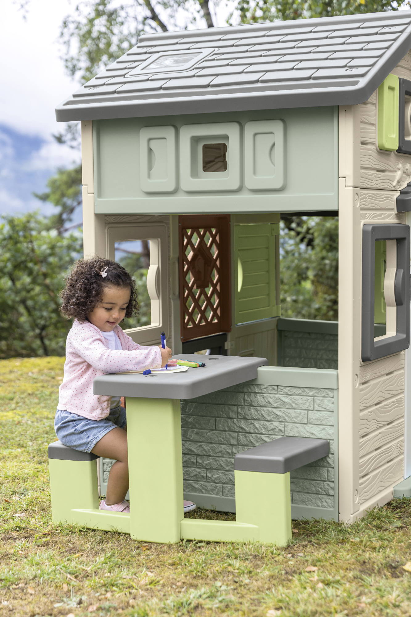 Schicker Picknick-Platz aus 53% Recycling-Kunststoff für die Smoby Spielhäuser! So hat der Nachwuchs neben Spiel und Spaß rund ums Haus auch noch einen tollen Sitzplatz für sich und alle Freunde. Der Picknicktisch ist passend für eine Vielzahl an Smoby Spielhäusern. Welches Set für welches Spielhausmodell geeignet ist, zeigt die Kompatibilitätstabelle.