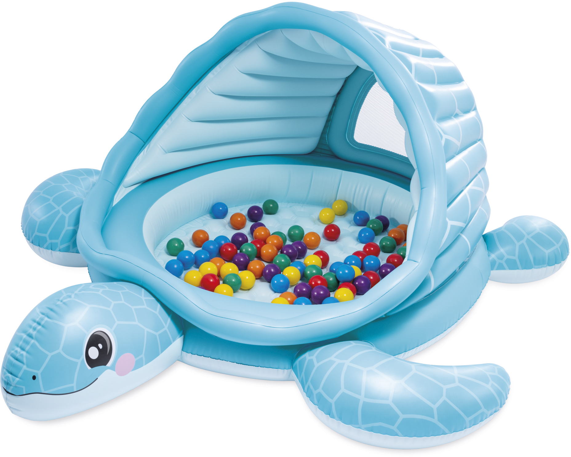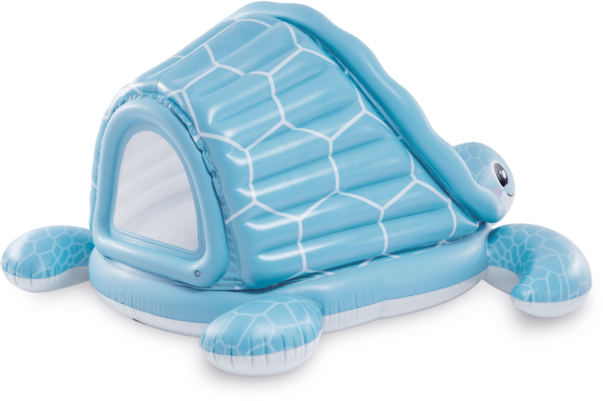 Das niedliche Schildkrötendesign in frischem Blau sorgt sofort für gute Laune, während das integrierte Sonnendach angenehmen Schatten spendet.
