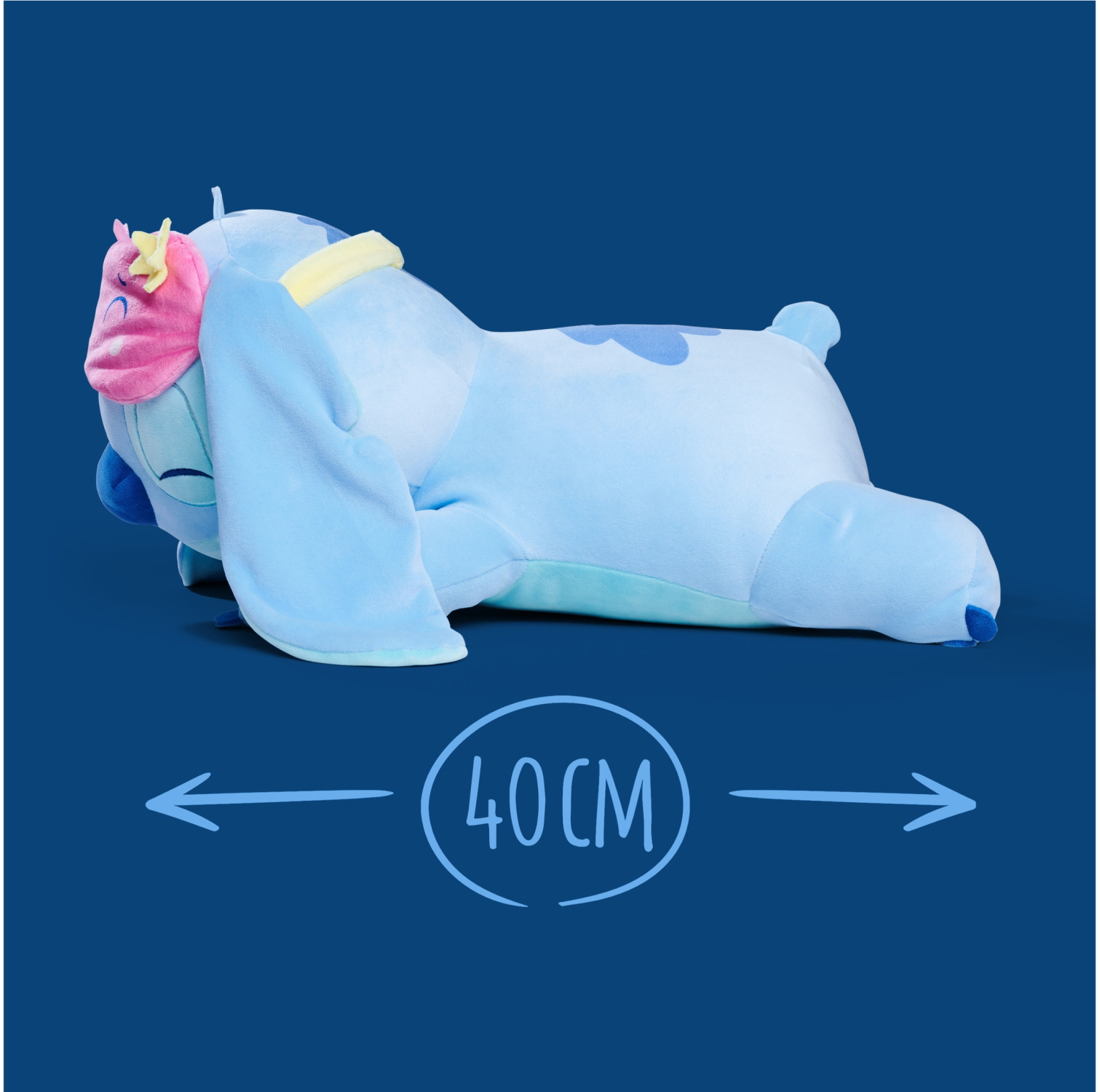 Beliebter Disney Klassiker – Der bekannte Charakter „Stitch“ aus dem Film „Lilo & Stitch“ ist jetzt als besonders entspannte Plüschfigur erhältlich – mit Schlafmaske und in liegender Position.