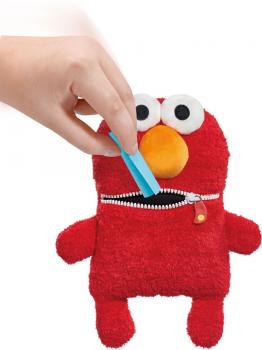 Ein Monster mit rotem Fell und einer orangen kartoffelförmigen Nase. Das kann nur ELMO aus der SESAMSTRASSE sein. Jetzt als Original SORGENFRESSER-Figur aus weichem Plüsch zum Knuddeln und Liebhaben.
