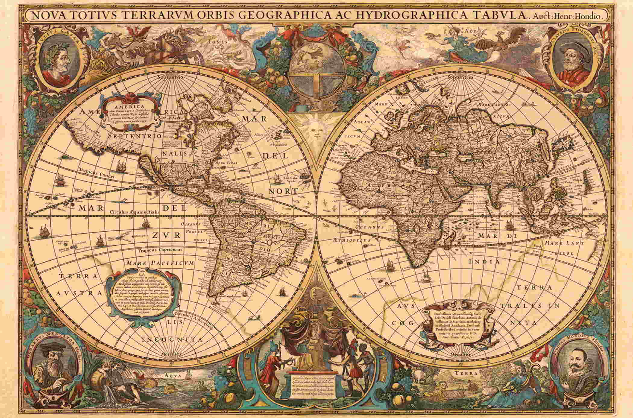 - Modell: Historische Weltkarte, Henricus Hondius 1630