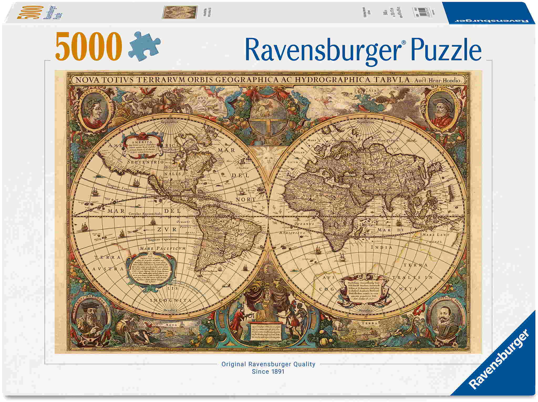 5000 Teile Ravensburger Puzzle Historische Weltkarte, Henricus Hondius 1630 17411