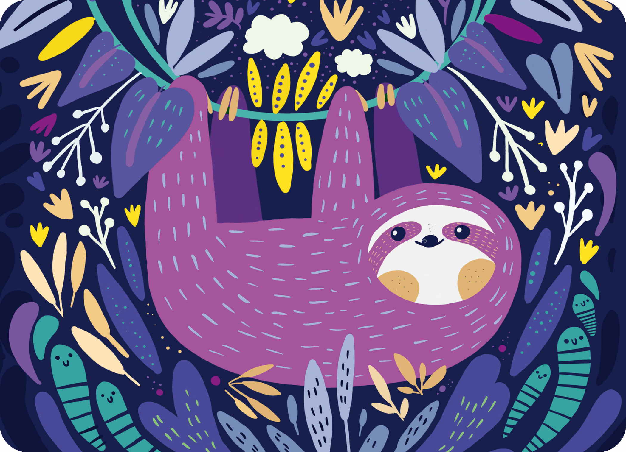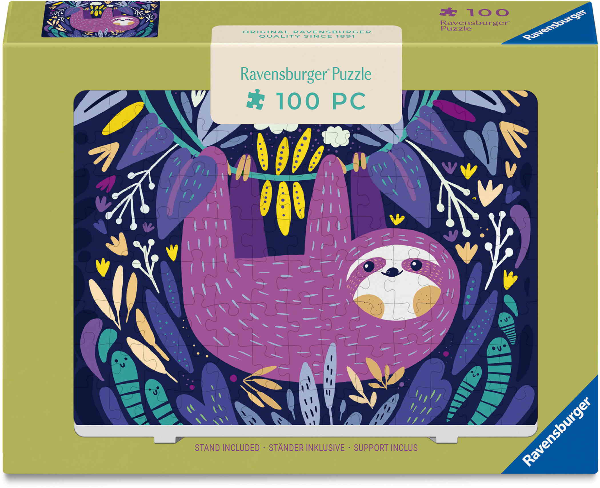 100 Teile Ravensburger Puzzle mit Aufsteller Lächelndes lila Faultier 12002040