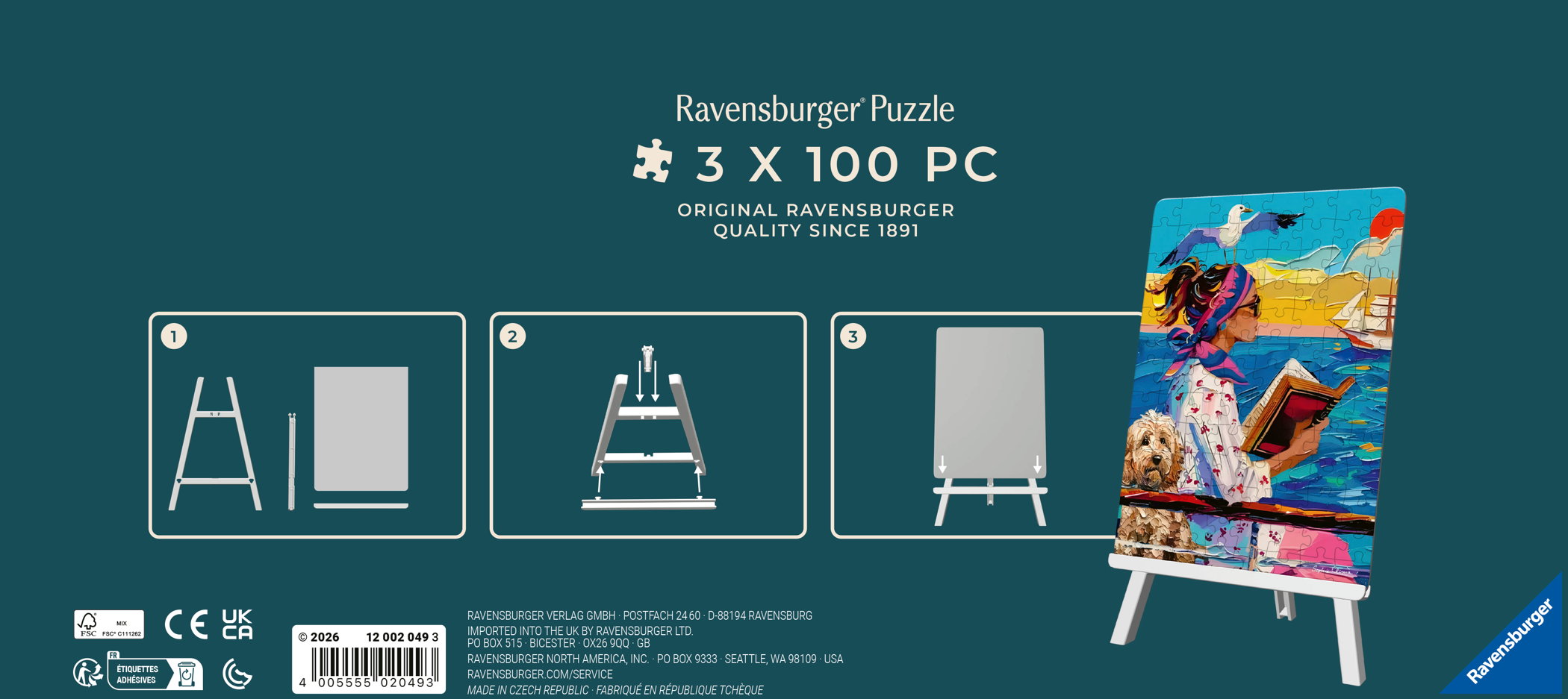 Gönnen Sie sich eine digitale Pause mit den Ravensburger Minipuzzles - eine kreative Auszeit für zwischendurch! Dieses Mini-Puzzle-Set mit 3x 100 Teilen im handlichen Format bietet entspannenden Puzzlespaß – jederzeit und überall. Die liebevoll gestalteten Motive bringen Farbe und Freude in Ihren Alltag. Mit der beiliegenden Mini-Staffelei wird jedes fertige Puzzle zum dekorativen Hingucker auf dem Schreibtisch oder im Regal.Dreifacher Puzzlespaß im Mini-Format – für kreative Auszeiten zu Hause, im Büro oder unterwegs! Das Set aus 3 Mini-Puzzles mit je 100 Teilen begeistert mit liebevoll gestalteten Motiven, präzise gestanzten Puzzleteilen und der bewährten Ravensburger Passgenauigkeit – für ein rundum gelungenes Puzzle-Erlebnis. Dank hochwertigem Papier mit Leinenstruktur wirken die Bilder besonders klar, lebendig und sind angenehm blendfrei. Das Highlight: Mit der beiliegenden Mini-Staffelei können Sie Ihr fertiges Puzzle stilvoll präsentieren – ob auf dem Schreibtisch, im Regal oder als kleines Geschenk.Geeignet für Erwachsene und Kinder ab 10 Jahren.