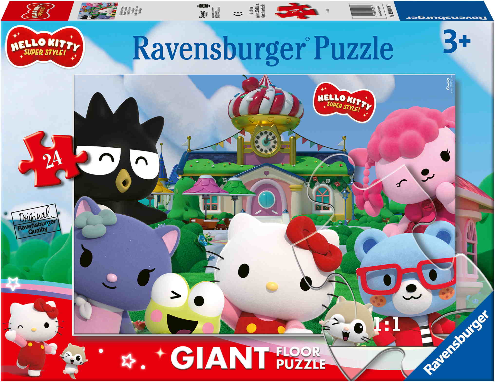 Ravensburger Giant Floor Puzzles – Puzzlespaß im Großformat! Aus 24 extra großen und stabilen Puzzleteilen entsteht ein tolles Motiv mit dem beliebten Kätzchen "Hello Kitty". Stück für Stück können Kinder ab 3 Jahren in fantastische Welten eintauchen und dabei spielerisch Konzentration und Feinmotorik trainieren.