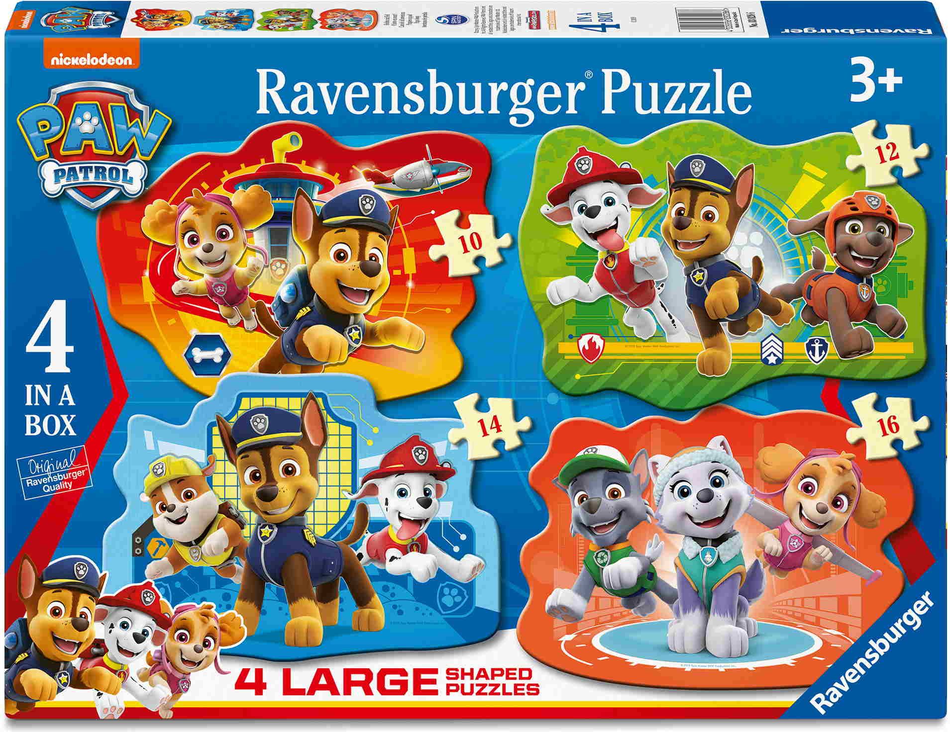 - Altersgerechter Puzzle-Spaß für kleine PAW Patrol Fans: Auf vier farbenfrohen Puzzles warten die PAW Patrol Helden Chase, Marshall, Rubble, Rocky, Zuma, Skye und Everest darauf, zu Hilfe gerufen zu werden. Wo immer es einen Notfall gibt, sind sie zur Stelle! Jedes Puzzle hat einen unterschiedlichen farblichen Hintergrund. So fällt es kleinen Händen leichter, Teile zu finden, zu sortieren und an die richtige Stelle zu legen. Die Teilezahl variiert von Motiv zu Motiv und ermöglicht es, mit wachsendem Geschick den Schwierigkeitsgrad zu steigern.Suchen, Finden und Sich-Freuen - Puzzlen ist, wenn sich ein Erfolg an den anderen reiht. Deshalb lieben Kinder es, die Puzzleteile immer wieder zu ihren Lieblingsmotiven zusammen zu setzen. Doch Puzzles bieten mehr als Spaß: Mit der richtigen Schwierigkeit gewählt, lassen sie Kinder jeden Alters an den Herausforderungen wachsen, erhöhen ihre Geduld und stärken ihr Selbstvertrauen. Ravensburger Kinderpuzzle sind damit ein ideales Geschenk und eine tolle Freizeitbeschäftigung!