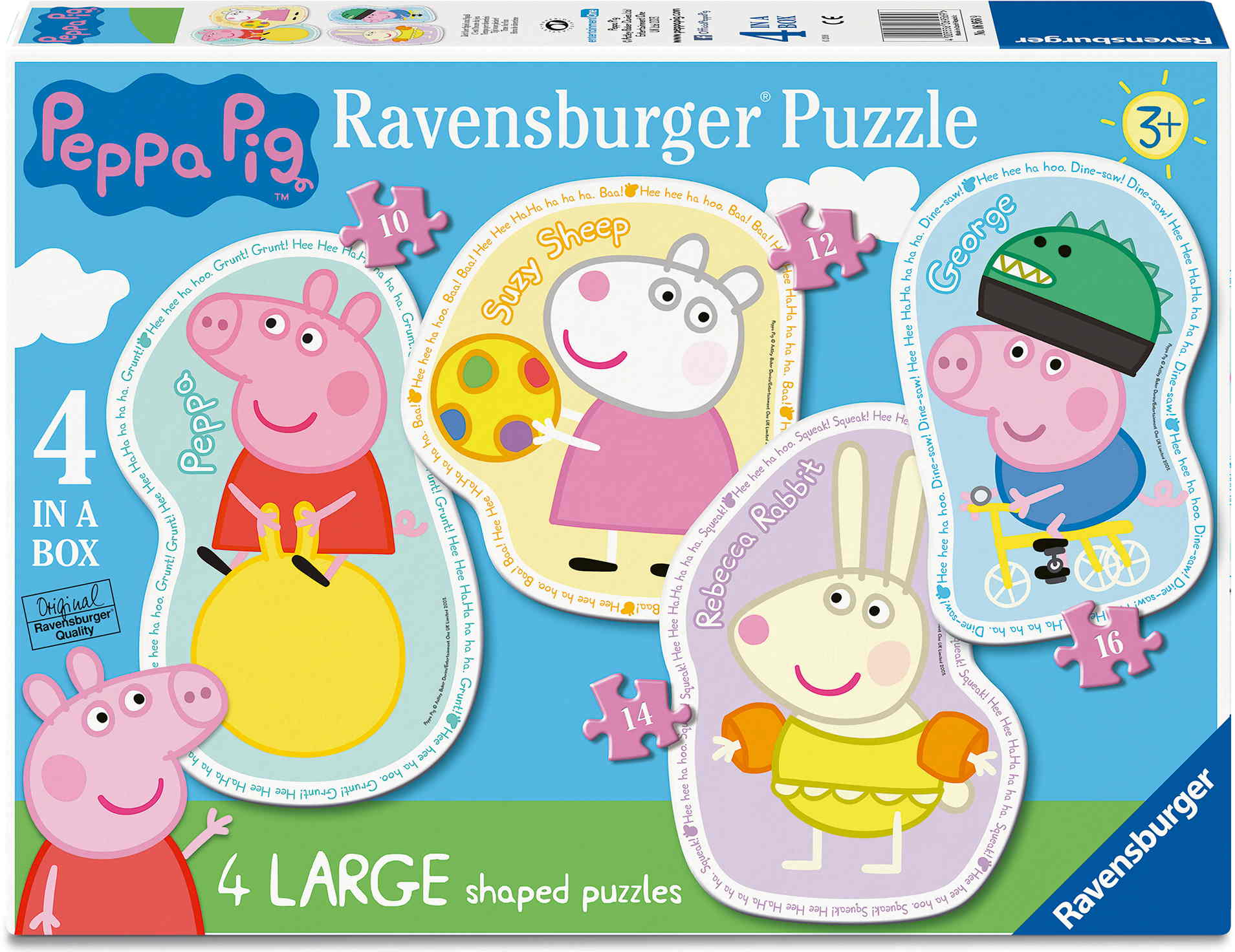- Vierfacher Puzzlespaß: Entdecke Peppa Pig und ihre Freunde auf 4 farbenfrohen Puzzlemotiven! Jedes der vier Puzzles ist formgestanzt und etwa 25 x 35 cm groß; die großen Puzzleteile aus extradickem Karton variieren von 10 Teilen bis 16 Teilen und sind perfekt geeignet für Kinder ab 3 Jahren. Beim Puzzeln trainieren Kinder spielerisch ihre Konzentration und Feinmotorik und haben dabei jede Menge Spaß.