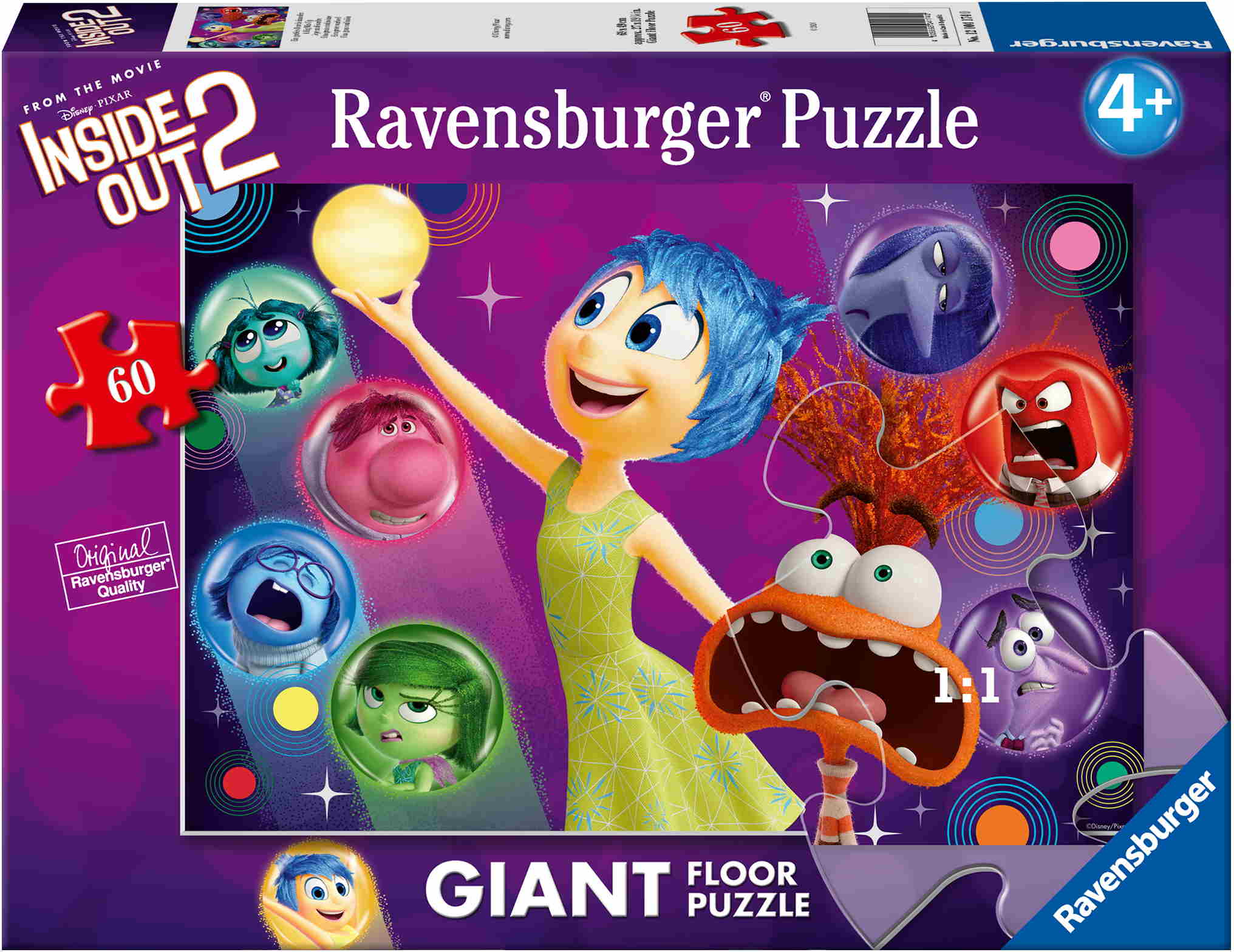 Ravensburger Giant Floor Puzzles – Puzzlespaß im Großformat! Aus 60 extra großen und stabilen Puzzleteilen entsteht ein tolles Motiv aus dem bekannten Disney/Pixar Film „Alles steht Kopf 2“. Stück für Stück können Kinder ab 4 Jahren in fantastische Welten eintauchen und dabei spielerisch Konzentration und Feinmotorik trainieren.