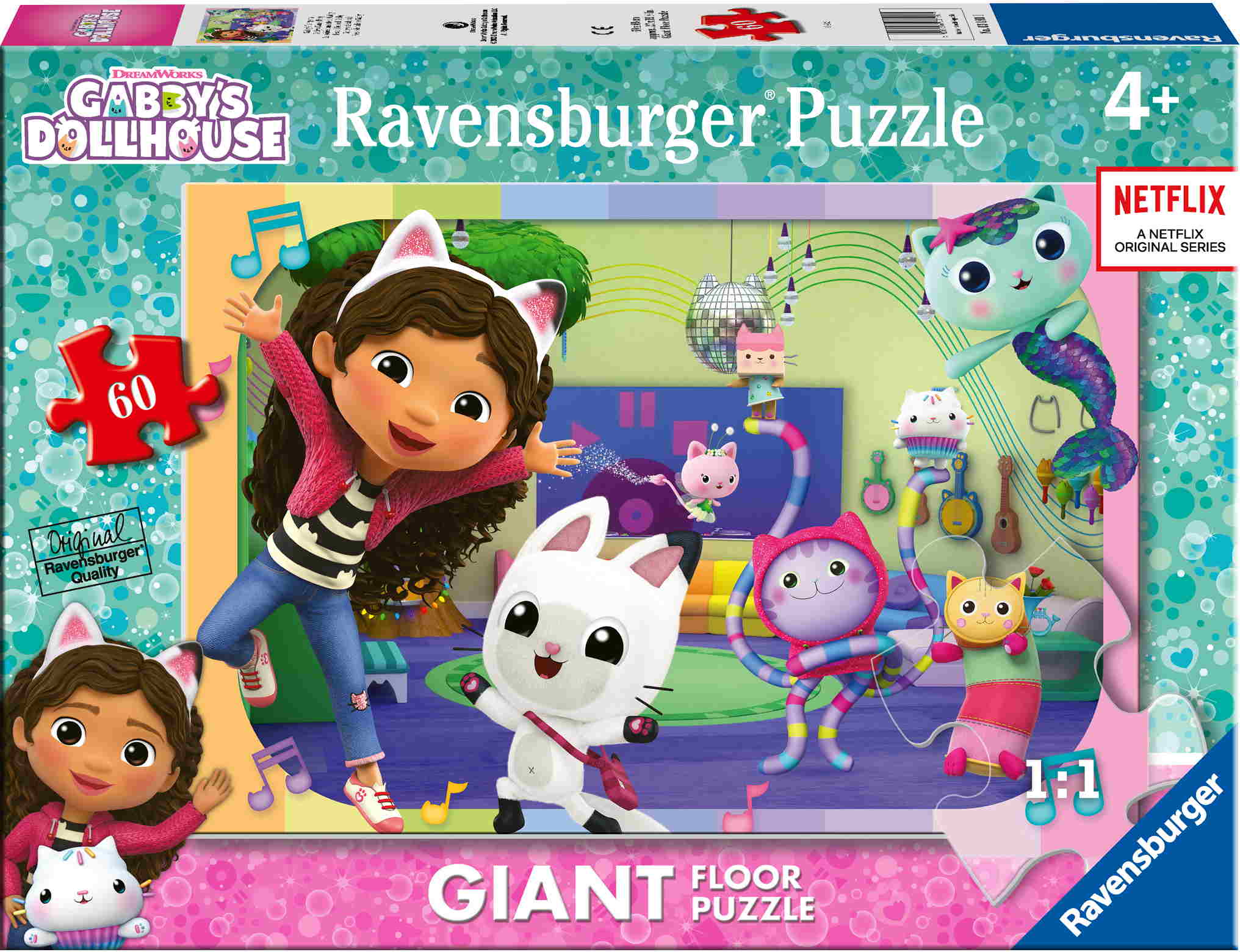 Ravensburger Giant Floor Puzzles – Puzzlespaß im Großformat! Aus 60 extra großen und stabilen Puzzleteilen entsteht ein tolles Motiv mit Gabby und ihren Freunden aus der Kinderserie „Gabby's Dollhouse“. Stück für Stück können Kinder ab 4 Jahren in Gabbys fantastische Welt eintauchen und dabei spielerisch Konzentration und Feinmotorik trainieren.