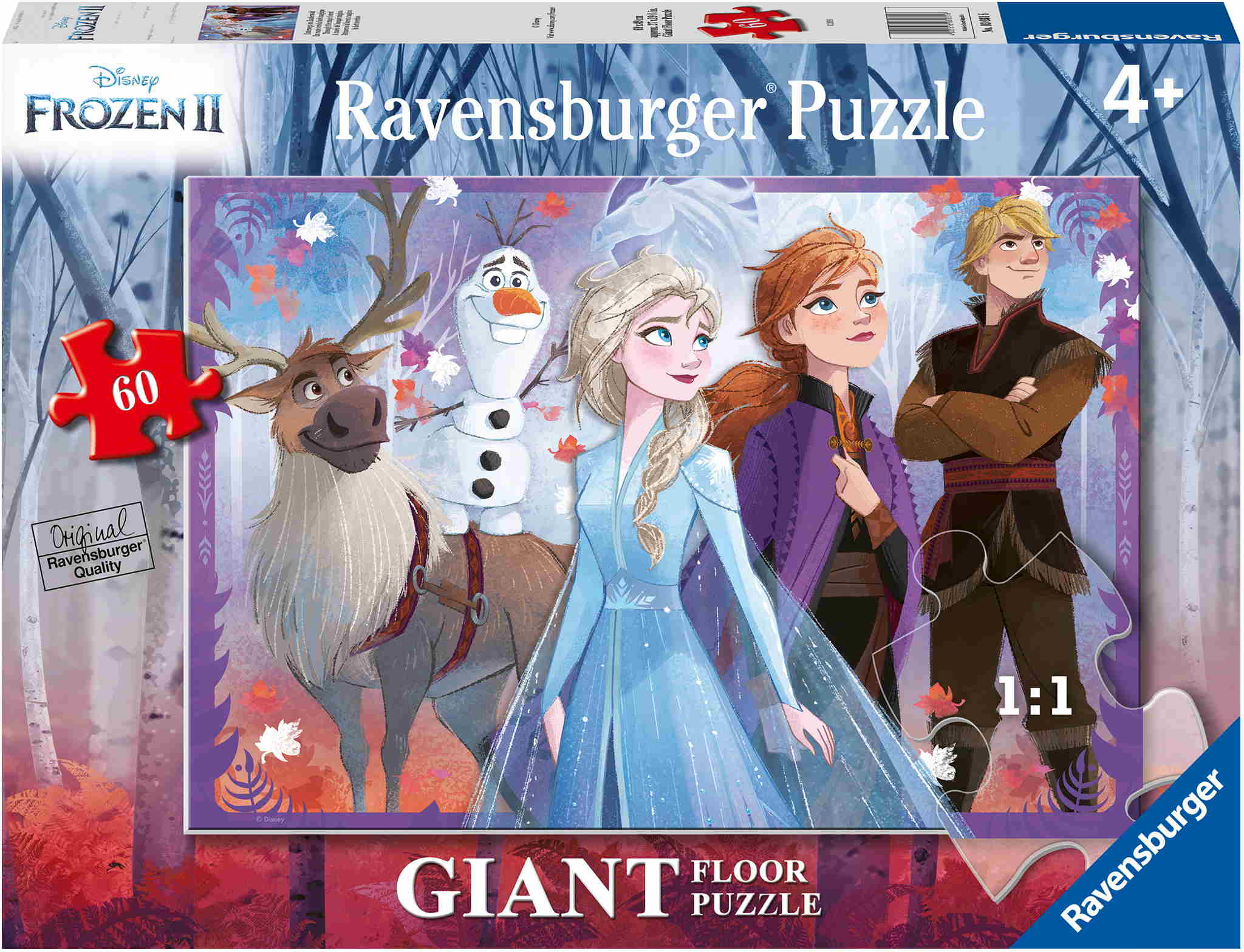 Ravensburger Giant Floor Puzzles – Puzzlespaß im Großformat! Aus 60 extra großen und stabilen Puzzleteilen entsteht ein tolles Motiv mit Anna, Elsa und ihren Freunden aus dem bekannten Disney-Film „Die Eiskönigin 2“. Stück für Stück können Kinder ab 4 Jahren in die fantastische Welt der Eiskönigin eintauchen und dabei spielerisch Konzentration und Feinmotorik trainieren.
