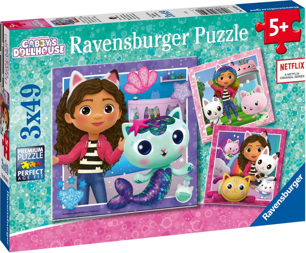 3 x 49 Teile Ravensburger Kinder Puzzle Gabby's Dollhouse Spielzeit mit Gabby 05659