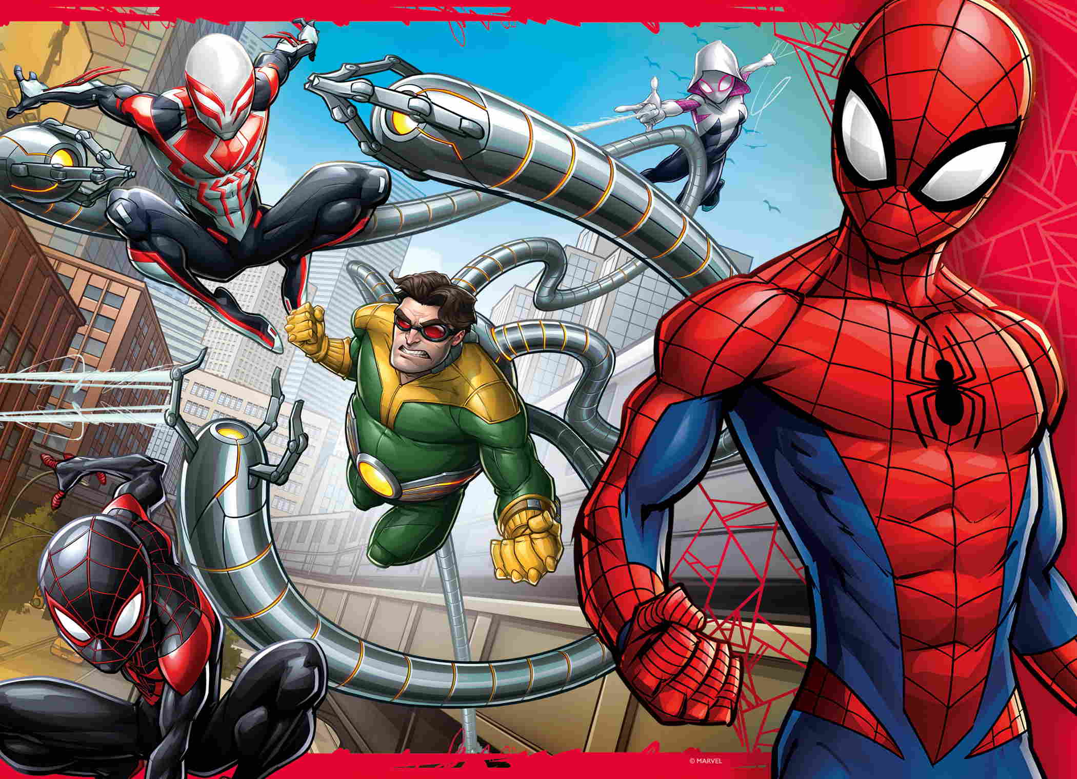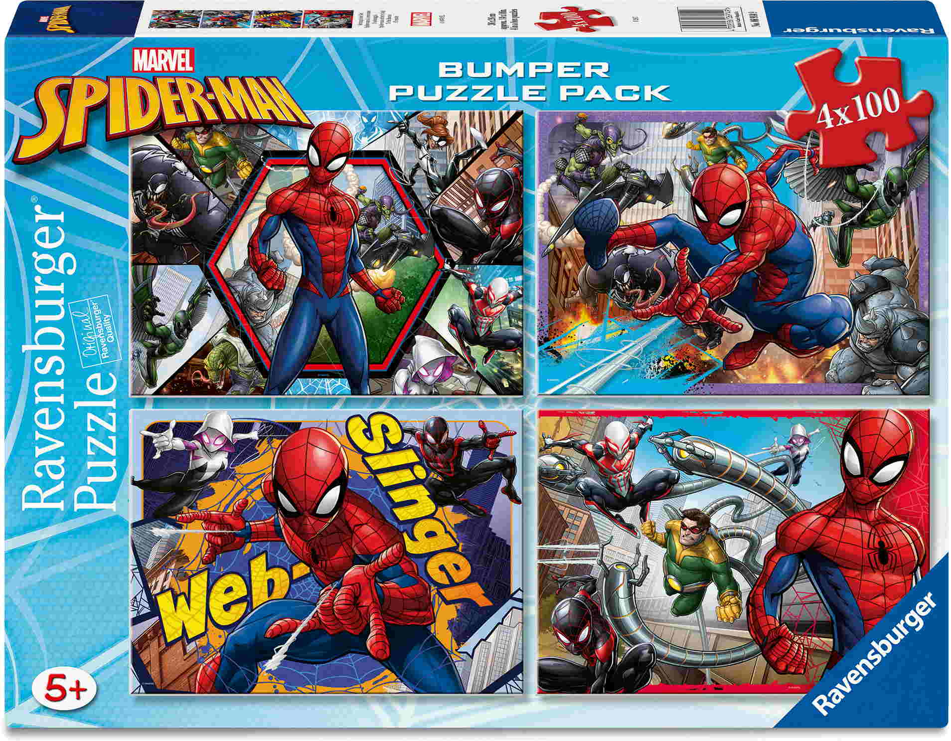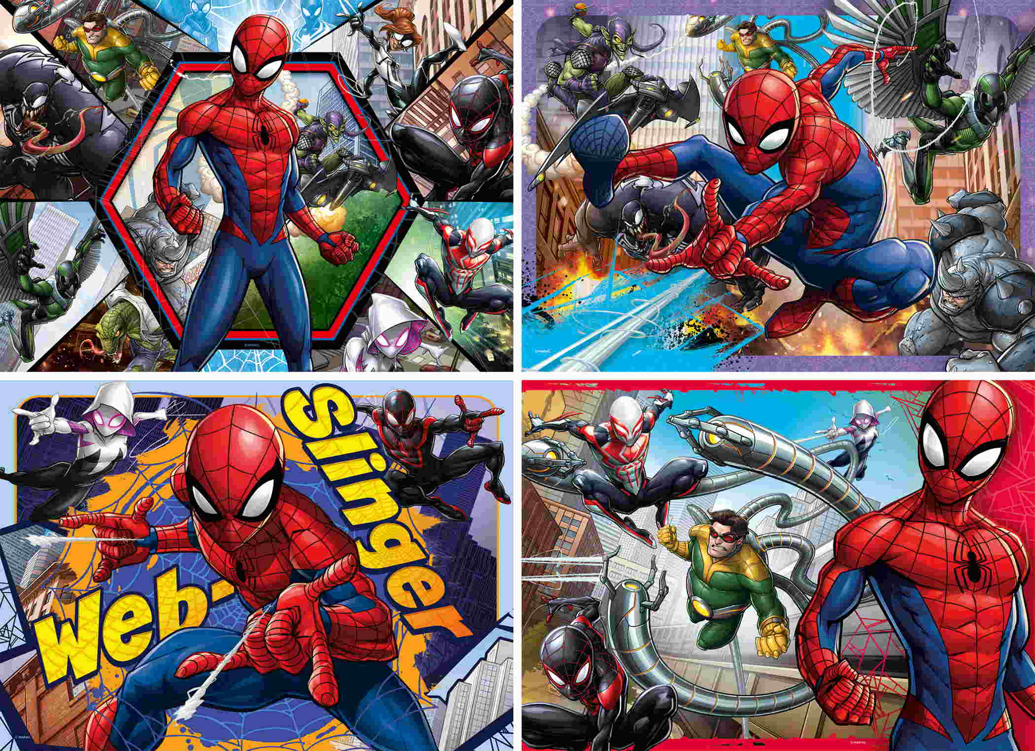 Hier steckt mehr drin! 4 Puzzles mit jeweils 100 Teilen: Vierfacher Puzzlespaß für Kinder ab 5 Jahren. Unsere Puzzles werden in exzellenter Verarbeitungsqualität mit Material aus nachhaltiger Forstwirtschaft gefertigt. Stück für Stück entstehen 4 wunderschöne Motive mit dem beliebten Superhelden "Spiderman".