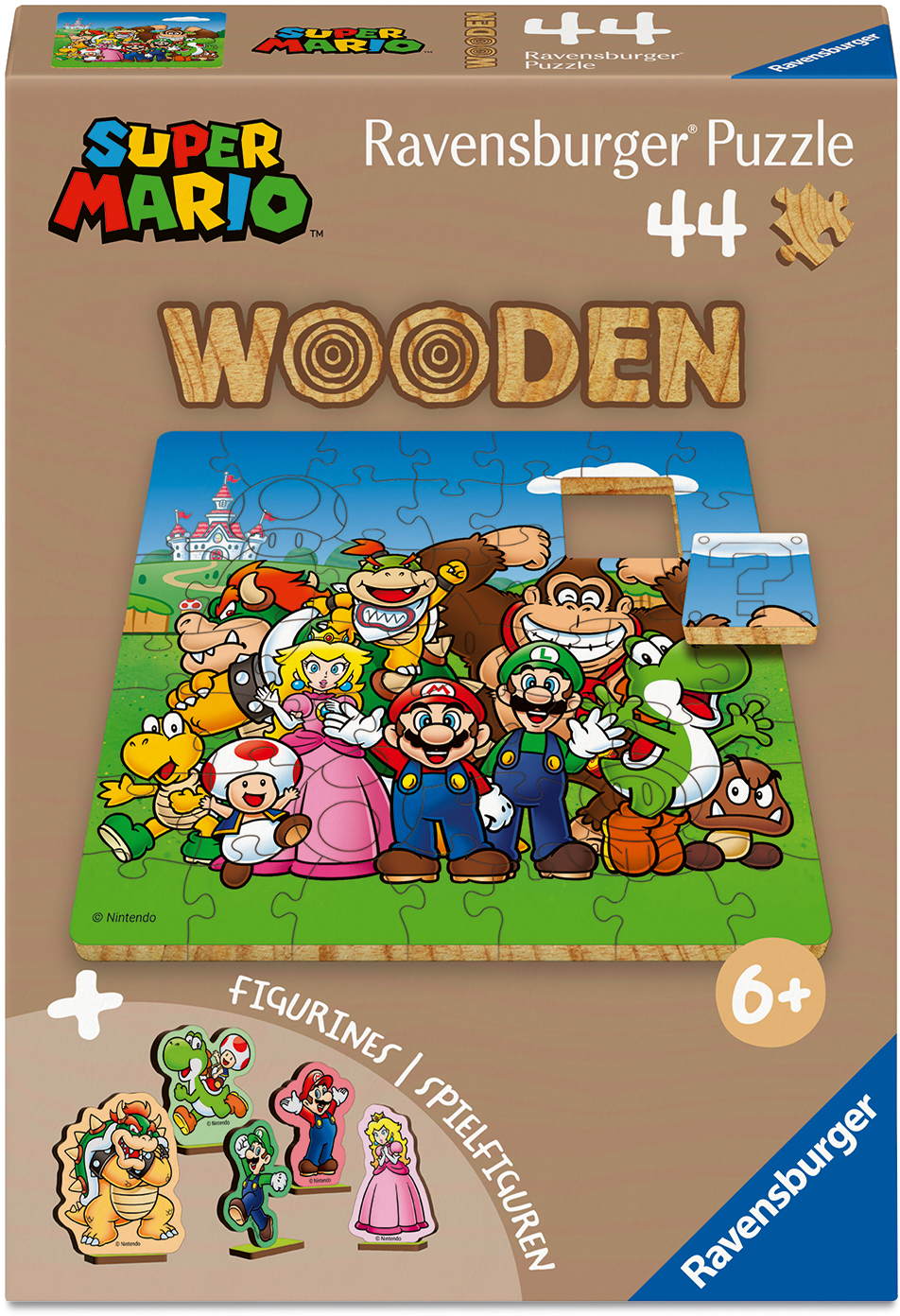 Es gibt WOODEN Puzzles in verschiedenen Teilezahlen und Formaten: 22 Teile inklusive 5 Whimsies + 5 Spielfiguren, ab 4 Jahre; 44 Teile inklusive 5 Whimsies + 5 Spielfiguren, ab 6 Jahre