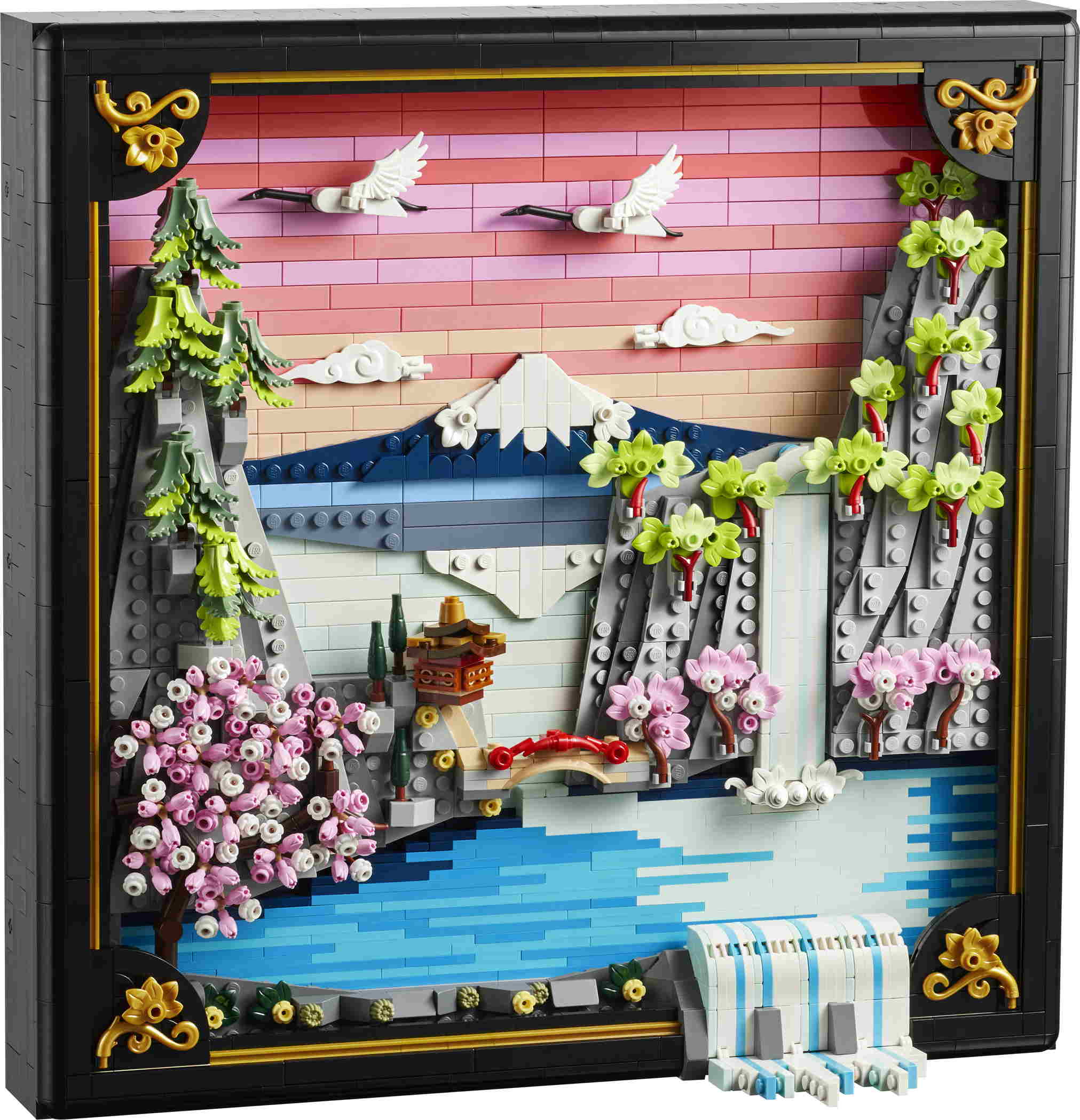 - LEGO® Art Japanische Kirschblütenlandschaft (31218) ist ein Bauset für Erwachsene, das die farbenfrohe Natur hereinholt. Dieses atemberaubende 3D-Kunstwerk ist wunderschönen Frühlingsmotiven aus Japan und den Darstellungen japanischer Ukiyo-e-Künstler nachempfunden. Das Bild stellt den Fuji, ein Teehaus, eine Brücke, einen Wasserfall, fliegende Mandschurenkraniche, den Japanischen Ahorn „Sango kaku“ und Schirmtannen dar.Die ästhetische Zimmerdeko wird von einem schwarz lackierten Schaukasten umrahmt und kann in 2 Versionen ausgestellt werden. Das Werk kann mithilfe eines Aufhängers an der Wand montiert werden oder auf ebenen Flächen frei stehen. Der Wasserfall des Kunstwerks ergießt sich über den Rahmen hinaus. Stellt man das Bild auf eine ebene Fläche, kann der Wasserfall so angepasst werden, dass er auf dieser Fläche „weiterfließt“Dieses LEGO Art Set lässt dich ein Kunstwerk aus LEGO Steinen erschaffen und bietet dir ein ebenso beruhigendes und achtsames wie fesselndes Bauerlebnis. Eine Bauanleitung führt dich durch dieses kreative Bauprojekt. Das Bauset ist eine tolle Belohnung für dich selbst und alle anderen, die Japan und die Kunst lieben. Das Set besteht aus 1.892 Teilen.