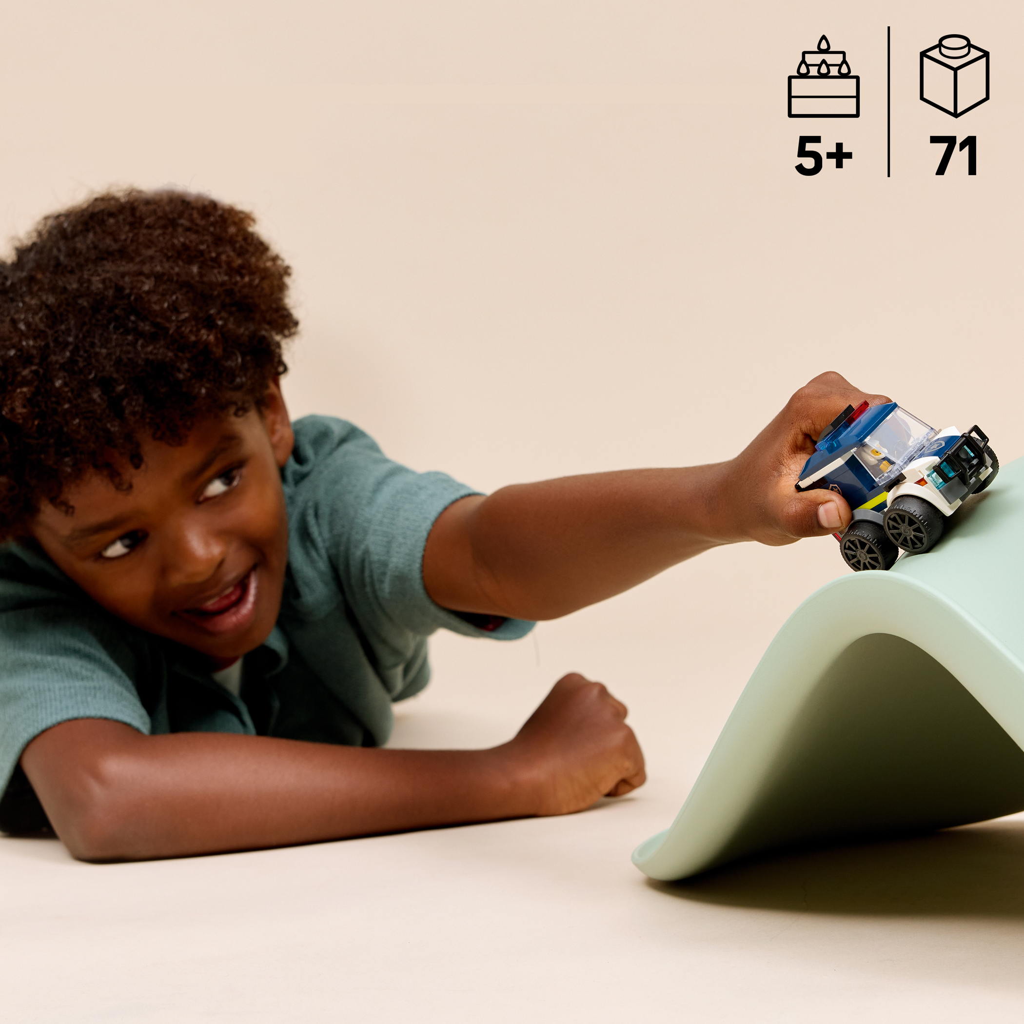 - LEGO® City Coole Flitzer - Polizei-Truck (60481); Bauset mit Mini-Spielzeugauto und Junior-Minifigur; Spielzeug-Blaulichtfahrzeug für Kinder ab 5 Jahren; kleines Geburtstagsgeschenk