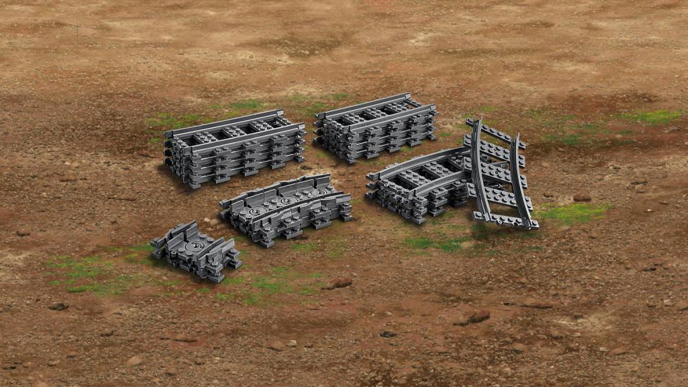 - Füge biegsame Schienensegmente zu deinem LEGO® City Eisenbahnnetz hinzu, um Hindernisse und seltsame Gebilde zu umfahren.