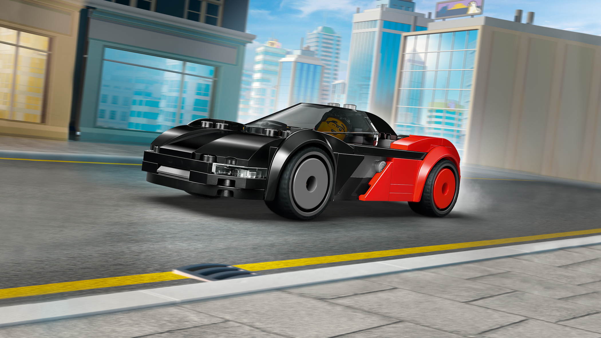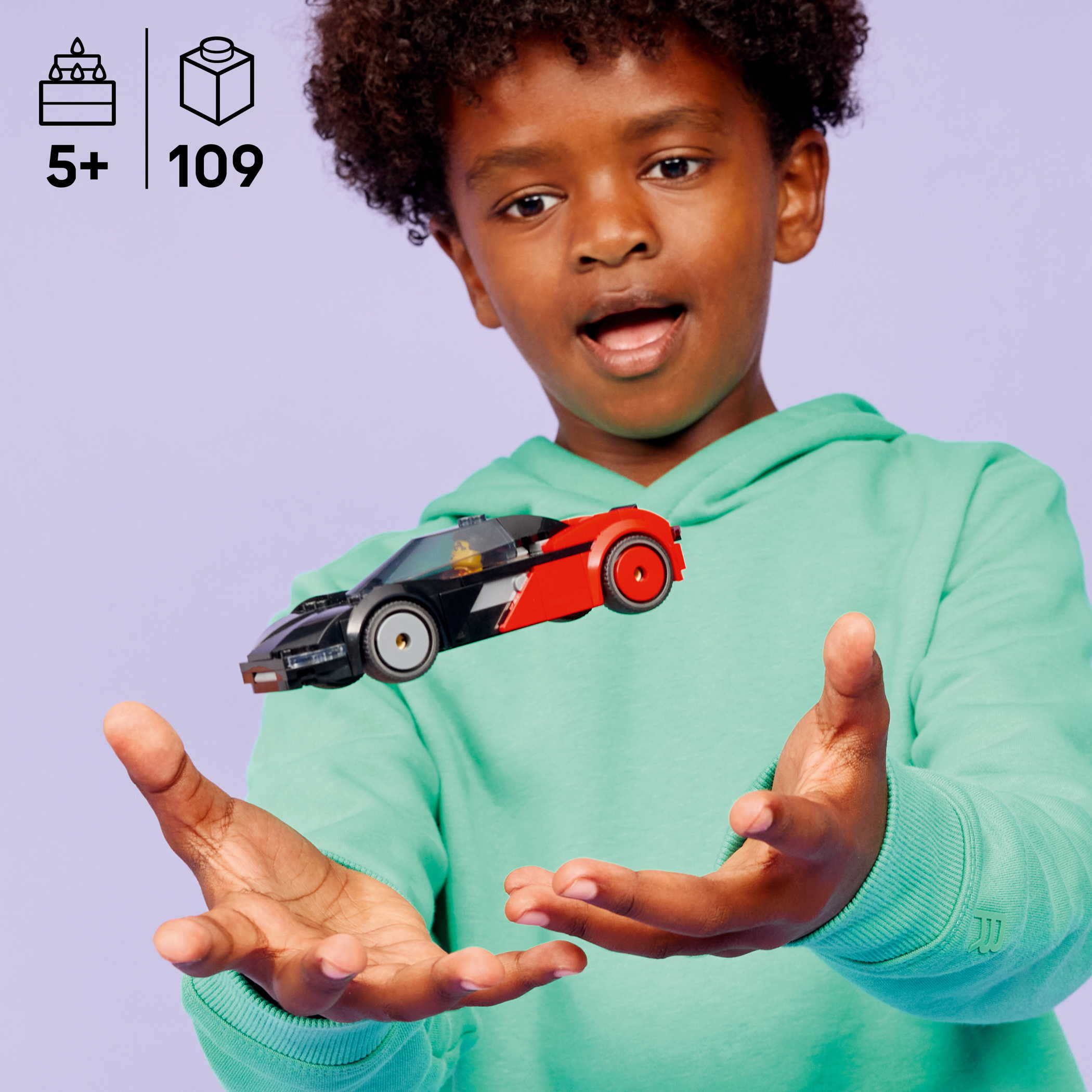 - GENAU WIE IN ECHT: Öffne die Heckklappe des kleinen schwarz-roten Sportwagens, um Zugang zu den Spielzeugakkus zu erhalten, und setz die Minifigur ans Steuer, um viele Stunden Vollgas zu geben