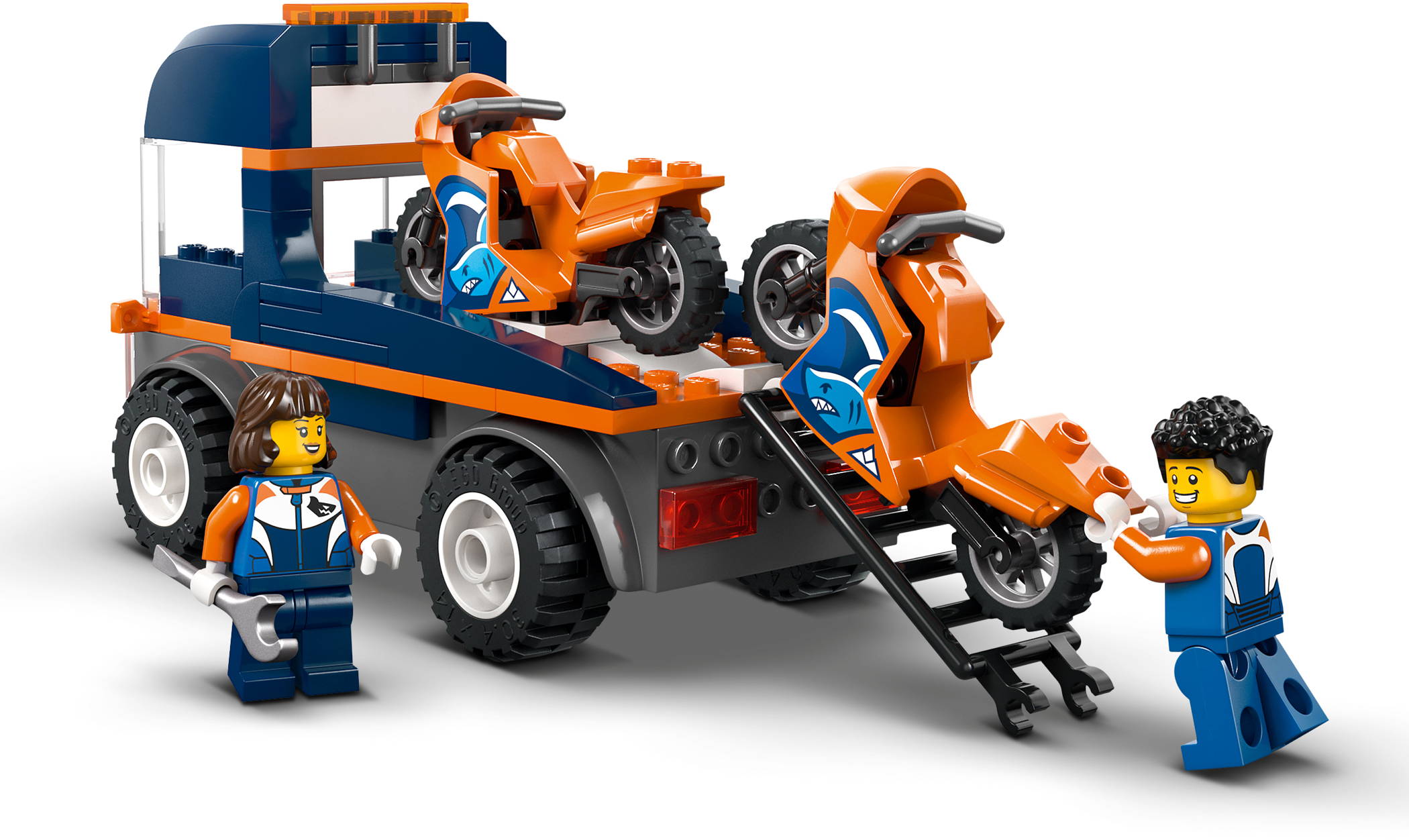 - KINDERSPIELZEUG FÜR ROLLENSPIELE: Kinder können eine Minifigur in die Kabine des Transporters setzen und die Rampe befestigen, um die beiden Motorräder auf- und abzuladen