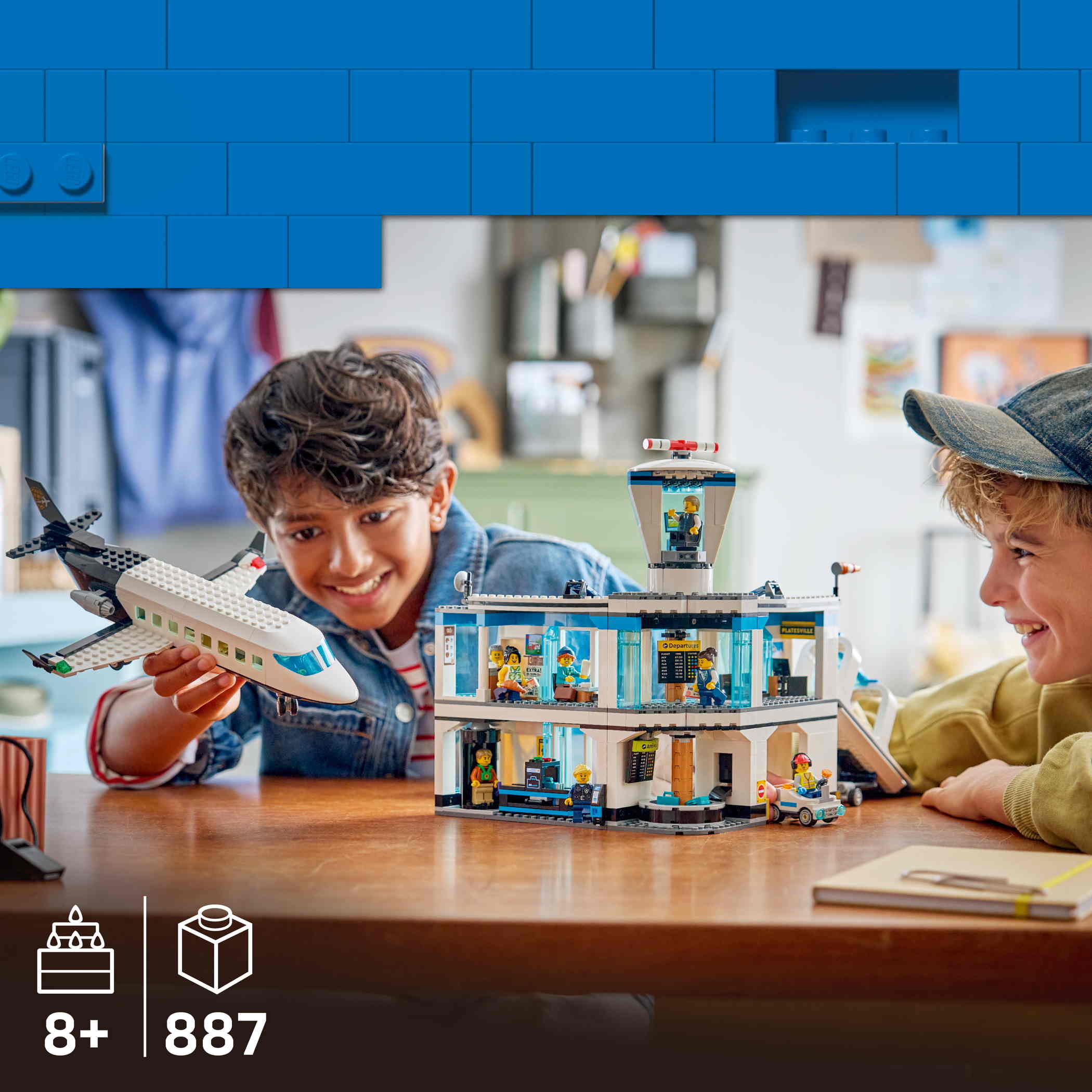 - FLUGHAFENMODELL: LEGO® City Flughafen mit Flugzeug (60502) ist ein Spielset, das Kinder ab 8 Jahren gemeinsam bauen lässt. Ein Flughafenterminal, ein Passagierflugzeug und 9 Minifiguren laden zum Spielen ein