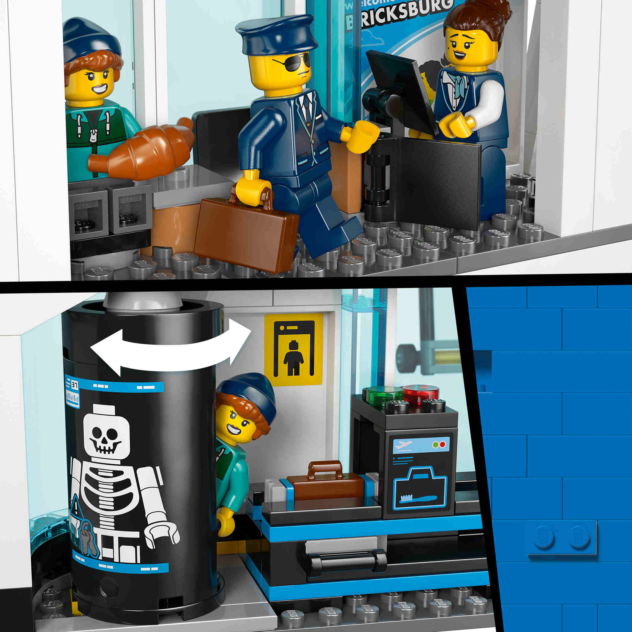 - Der LEGO® City Flughafen mit Flugzeug (60502) bietet Kindern ab 8 Jahren besonders viel Spielspaß. Auf dem detailreichen Flughafen laden unzählige Funktionen zu Rollenspielen ein. Kinder können Gepäck im Spielzeugscanner durchleuchten lassen, die Metalldetektorschleuse drehen, um ein Röntgen-Skelett zu enthüllen, und die Abfluganzeige ändern, um 1 von 4 Reisezielen auszuwählen. Zum Set gehören auch ein cooler Spielzeugflieger mit detailreicher Kabine und herunterklappbarer Treppe, ein Flugzeugschlepper und eine Gangway. 9 Minifiguren lassen Kinder viele Stunden fantasievoll spielen.Dieser Spielzeugflughafen ist eine tolle Geschenkidee für Kinder, die Modellflugzeuge und LEGO Bausets lieben. Für noch größere Abenteuer können Kinder dieses Set mit anderen separat erhältlichen LEGO City Modellen kombinieren.Die Funktion „Gemeinsam bauen“ in der LEGO Builder App lässt Freunde und die ganze Familie an den eigenen Geräten bei diesem Bauspaß mitmachen. Das Set besteht aus 887 Teilen.