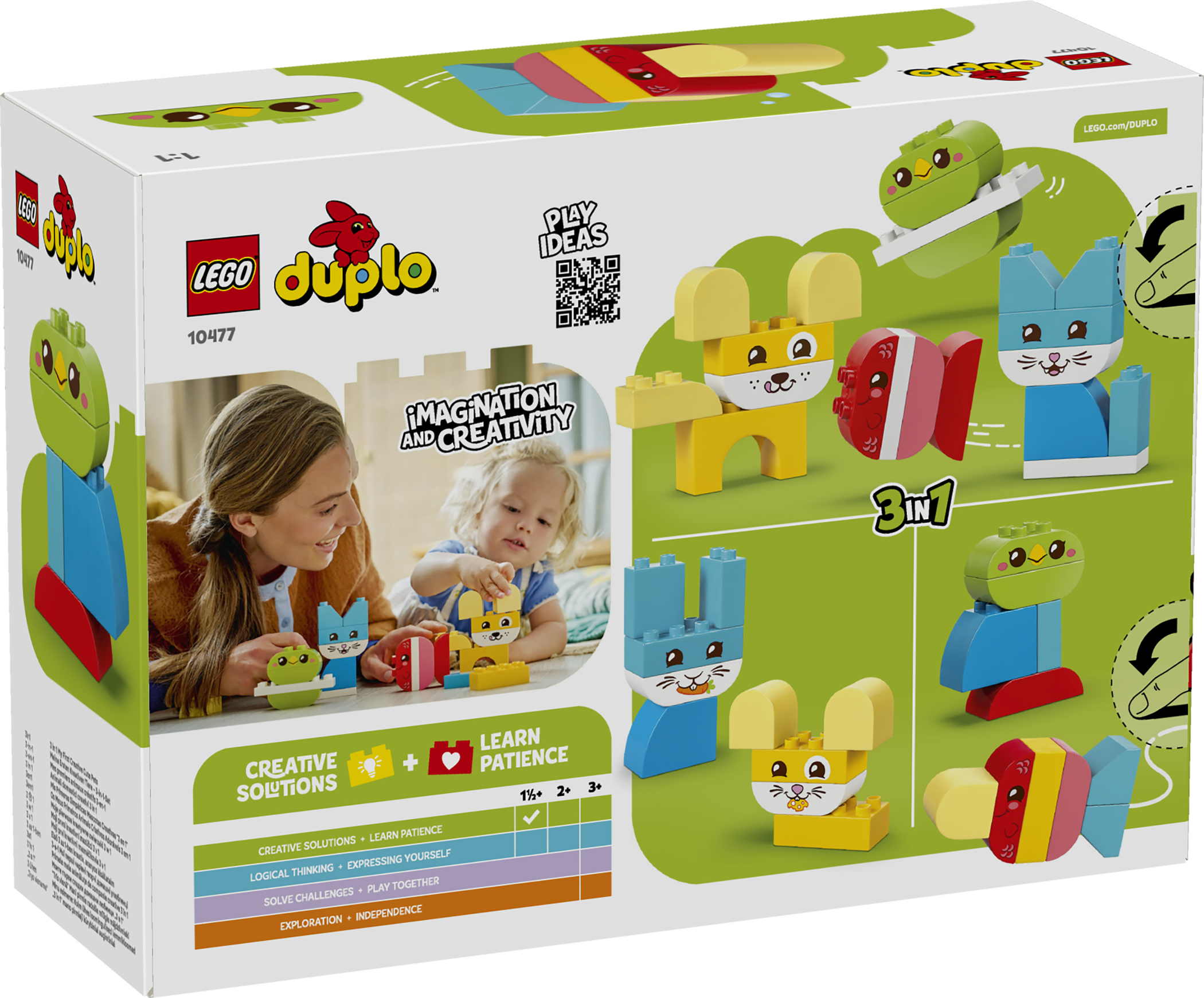 - Lernspielzeug für Kleinkinder: 3-in-1 Kreative Tiere (10477), bietet ein kreatives Spielerlebnis. Beim Bauen der verschiedenen LEGO® DUPLO® Spielzeugtiere lernen kleine Baufans unter anderem die Farben