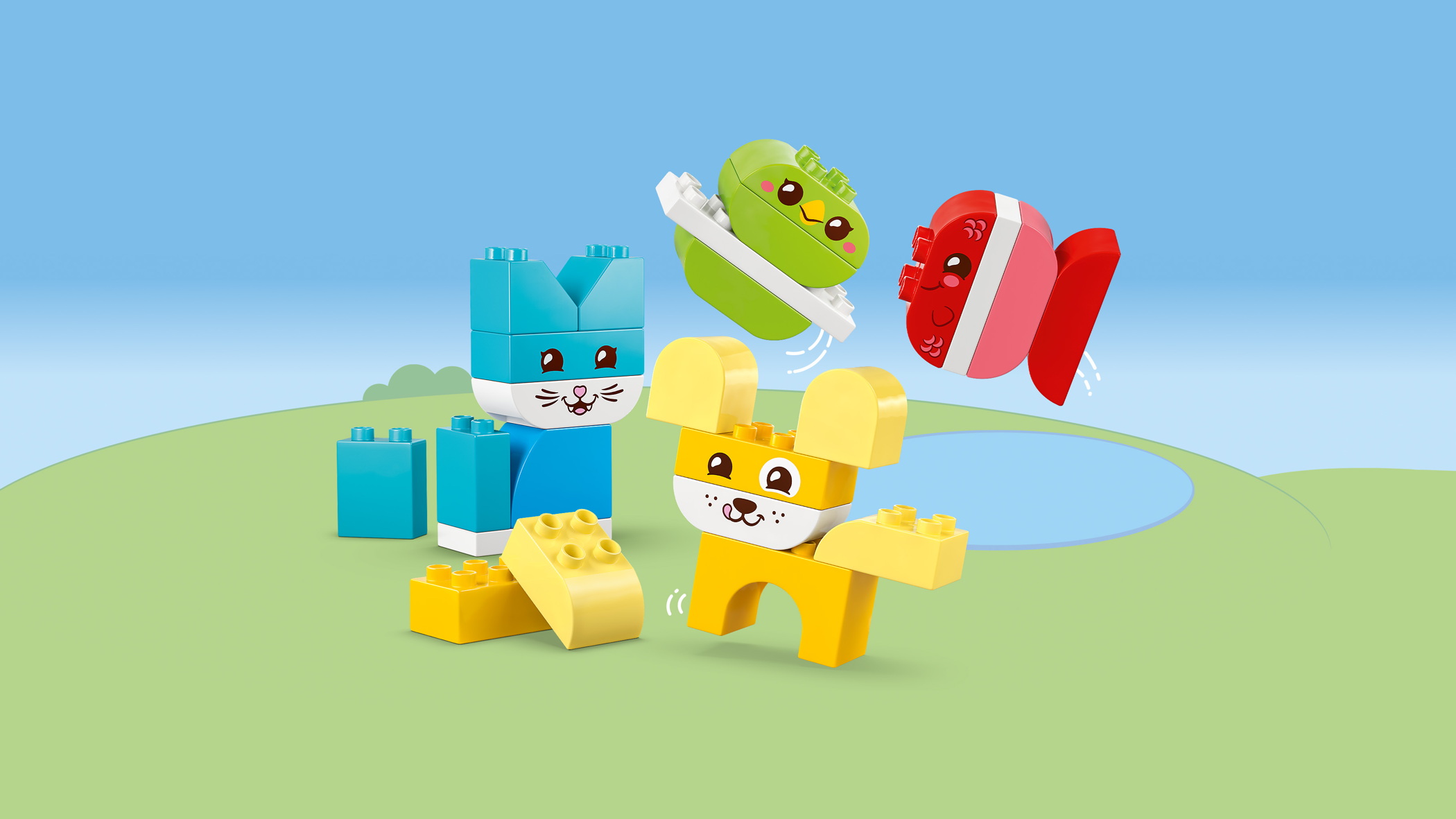 - LEGO® DUPLO® 3-in-1 Kreative Tiere (10477); Lernspielzeug mit 8 baubaren Tierfiguren; Katze, Maus, Hund, Hase, Vögel und Fische; Geschenk für Kleinkinder ab 18 Monaten