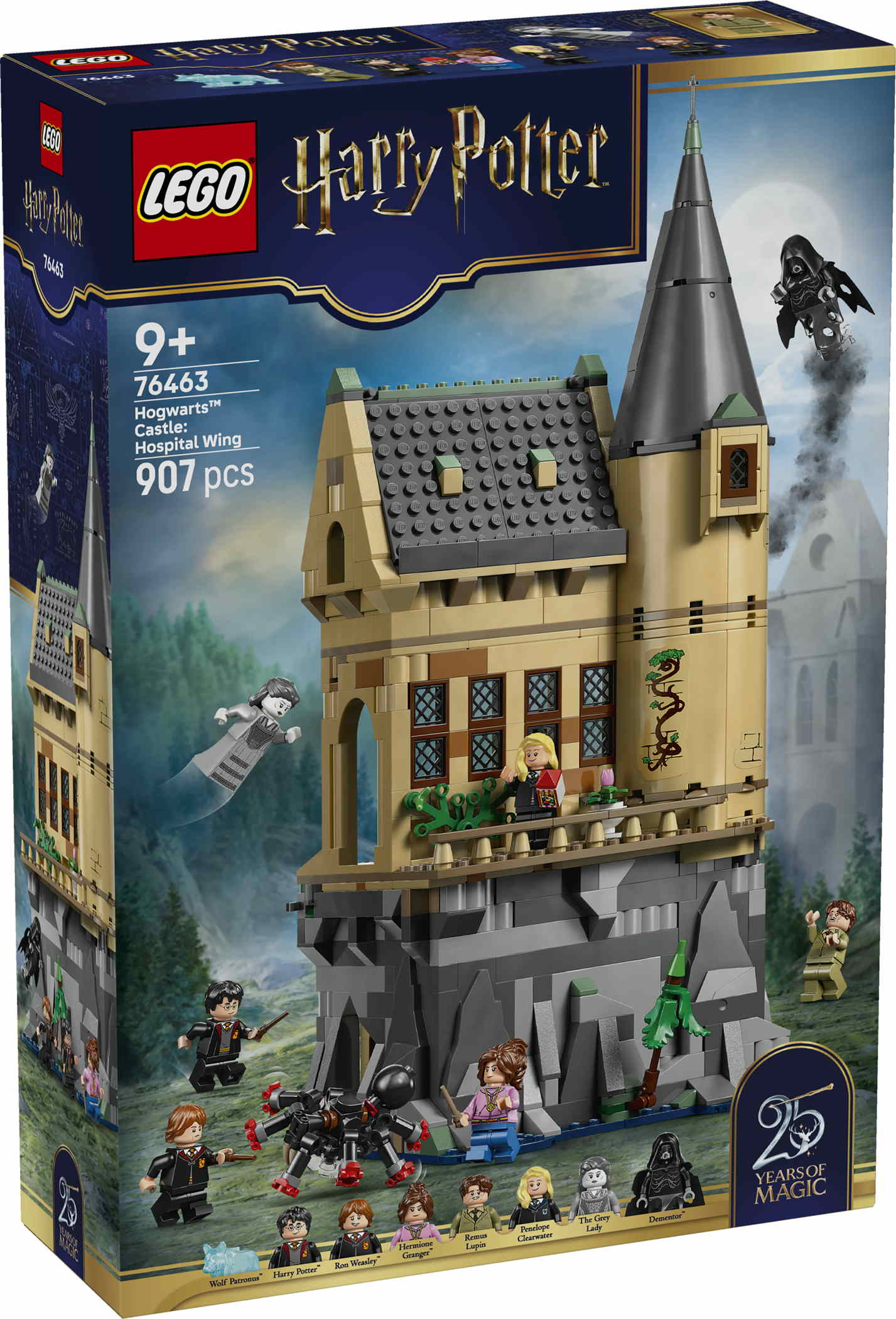 - Schloss Hogwarts™: Krankenflügel (76463) ist ein zauberhaftes Bauspielzeug, mit dem Kinder viele Harry Potter™ Szenen darstellen können. Besuche Patienten im Krankenflügel, stell den Unterricht im Fach Verteidigung gegen die dunklen Künste nach und begleite Penelope Clearwater und Die Graue Dame in den Ravenclaw™ Gemeinschaftsraum.Dieses Spielset mit einem Modell von Schloss Hogwarts ist ein tolles Geschenk für Jungen, Mädchen und Fans ab 9 Jahren. 7 LEGO Harry Potter Minifiguren, darunter auch Harry Potters Dementor™, laden zum Spielen ein. Auch Ron Weasleys Spinne und Remus Lupins Wolf-Patronus dürfen nicht fehlen. Der Wolf gehört zu einer ganzen Reihe von Patronus-Figuren zum 25-jährigen Jubiläum (in separat erhältlichen Sets). Nimm das Klassenzimmer für Verteidigung gegen die dunklen Künste aus dem felsigen Fundament, um besser spielen zu können, und schau dir 2 von insgesamt 14 Hogwarts-Porträts zum Sammeln an.Dieses Set gehört zu einer Sammlung aus (separat erhältlichen) modularen Bauspielzeugen, die man zum bisher detailreichsten Modell von Schloss Hogwarts™ aus LEGO Steinen zusammenfügen kann. Das Set besteht aus 907 Teilen.