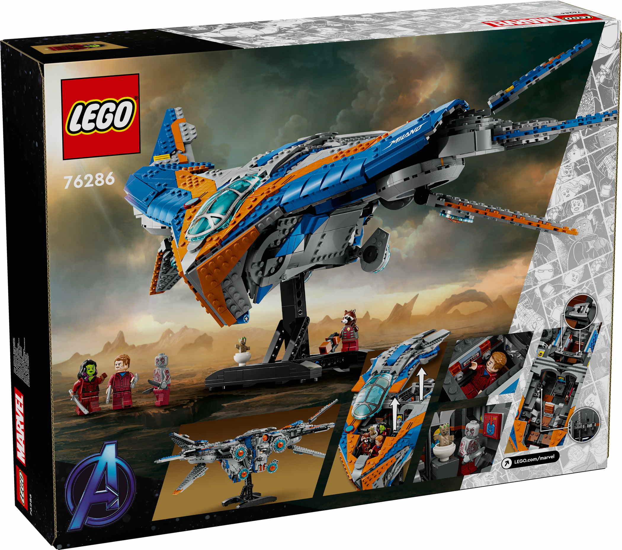 - LEGO® Marvel Guardians of the Galaxy: Die Milano (76286) ist ein tolles Bauspielzeug für Fans der Avengers ab 12 Jahren. Das imposante Raumschiff ist mit all den faszinierenden Details aus dem Film nachgebildet und bietet jungen Superhelden nicht nur ein galaktisches Bauerlebnis, sondern begeistert auch als spektakulärer Hingucker.Das Bauspielzeug basiert auf dem ersten Film der Guardians of the Galaxy Reihe und verfügt über 6 verstellbare Flügel und 4 bewegliche Heck-Booster. Hebt man das Dach des Raumschiffs ab, kommt das detailreiche Innenleben mit 3 markanten Bereichen zum Vorschein: einem Cockpit für 3 Minifiguren, einem Gemeinschaftsbereich mit zusätzlichem Sitz und Stauraum für Ausrüstung sowie einem Ruhebereich mit Bett und Kassettengerät (das in den Filmen eine wichtige Rolle spielt). Auch die Minifiguren Star-Lord, Gamora, Drax und Rocket sowie Baby Groot laden zum Spielen ein. Auf dem Ständer kann das Raumschiff ausgestellt werden. Und mit der LEGO Builder App auf ihrem Smartphone oder Tablet können Kinder 3D-Modellansichten vergrößern und drehen.