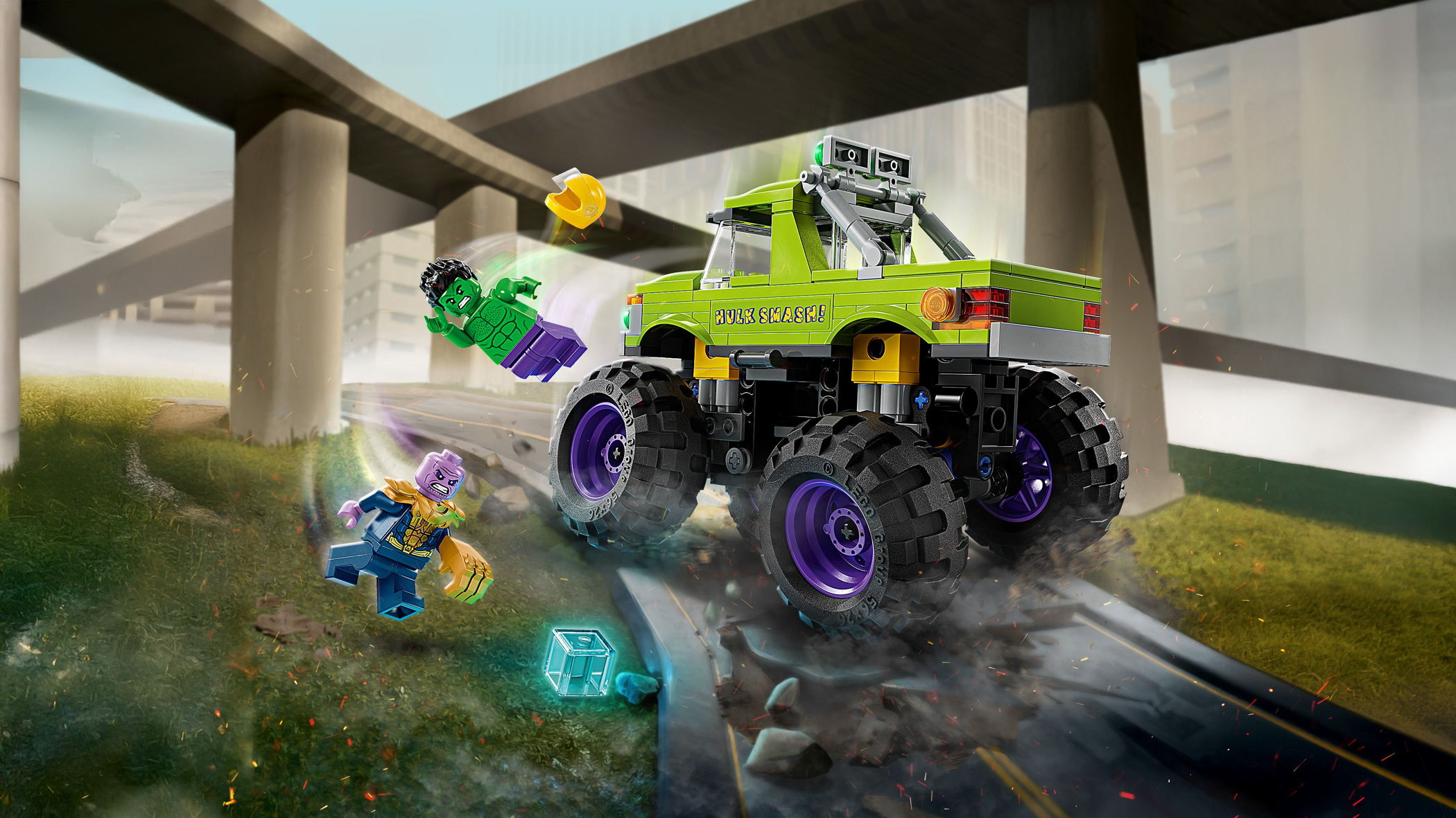 - LEGO® Marvel Hulk-Truck vs. Thanos (76312); Superhelden-Bauspielzeug; Avengers-Fahrzeug und Minifiguren; Monstertruck für Mega-Spaß; Geschenk für Jungen und Mädchen ab 7 Jahren