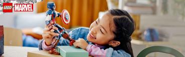 - Baue deinen eigenen Captain America! Bring den fantastischen Avenger in dieselben coolen Posen wie in den Marvel Filmen. Wenn er seinen berühmten Schild nicht gerade hält, kannst du ihn auf seinem Rücken befestigen, damit er die Hände bei seinen Abenteuern frei hat. Bist du bereit, deinen Superhelden auf spannende Missionen zu schicken?