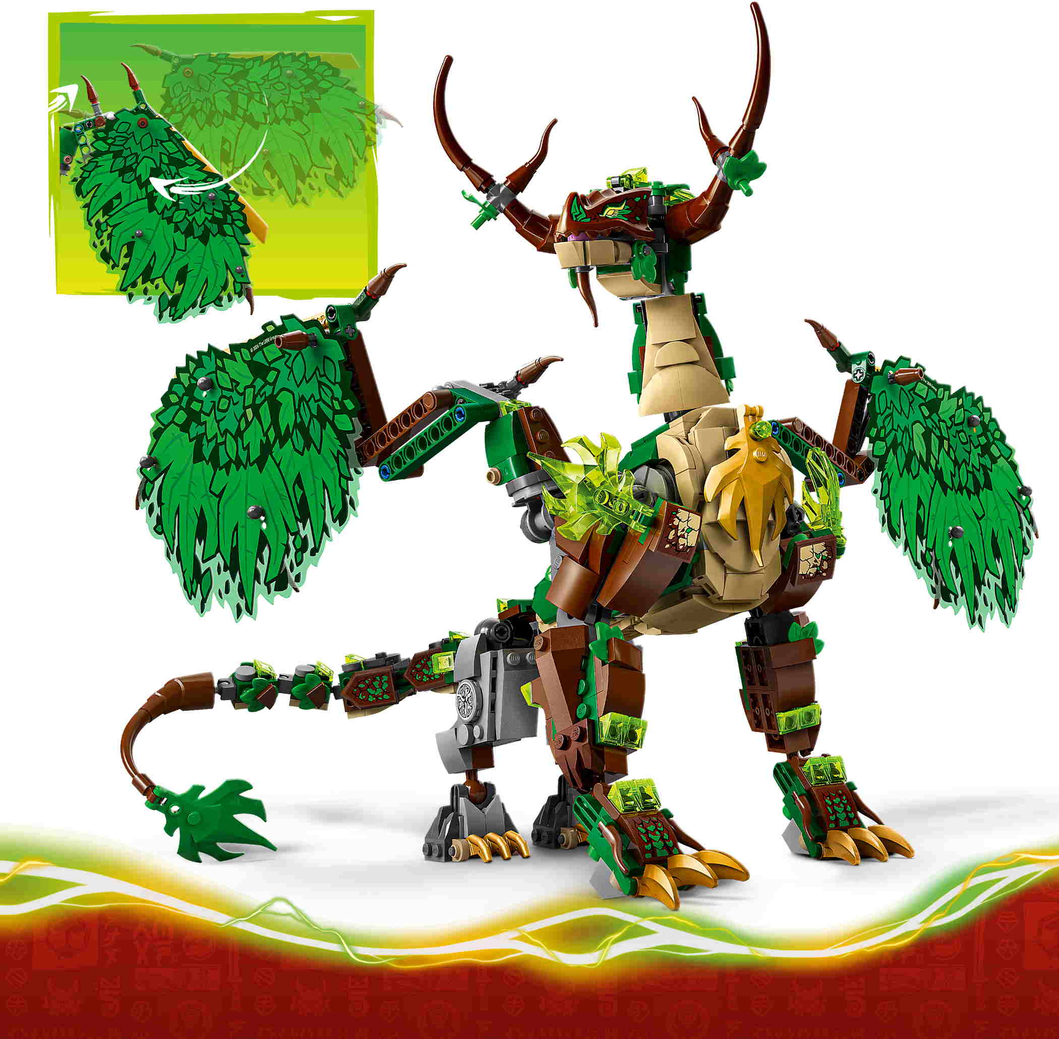 - LEGO® NINJAGO® Der Drache des Lebens (71859) lässt Kinder ab 9 Jahren das Modell bauen und dann die Actionszenen aus der 4. Staffel der TV-Serie NINJAGO Aufstieg der Drachen nachspielen. Der Spielzeugdrache kann seine Flügel ausbreiten oder anlegen und Kiefer, Kopf, Hals, Knöchel, Klauen und Schwanz bewegen. Außerdem trägt er einen Sattel für eine Minifigur.Das Spielset beinhaltet ein Nebenmodell aus Baum und Pflanze, das Kinder umdrehen können. Im Baum ist ein goldenes Schwert versteckt. Ein Mini-Mech mit Cockpit für eine Minifigur ist ebenfalls enthalten. Freu dich auf packende Rollenspiele mit 8 Minifiguren. Die Ninja Zane, Sora, Arin, Drachen-Form-Lloyd und Drachen-Form-Cole sowie das böse Trio aus Säuremonster, Erdmonster und Loyalistenanführer werden sich spannende Duelle liefern.LEGO NINJAGO Sets lassen Ninja-Fans in eine Fantasy-Welt eintauchen, in der sie fantasievoll mit ihren Ninja-Helden spielen können. Die LEGO Builder App mit verständlichen digitalen Bauanleitungen lässt Kinder selbstbewusst bauen, ein 3D-Modell vergrößern und drehen und verfolgen, wie weit sie mit ihrem Modell schon sind. Das Set besteht aus 1.050 Teilen.