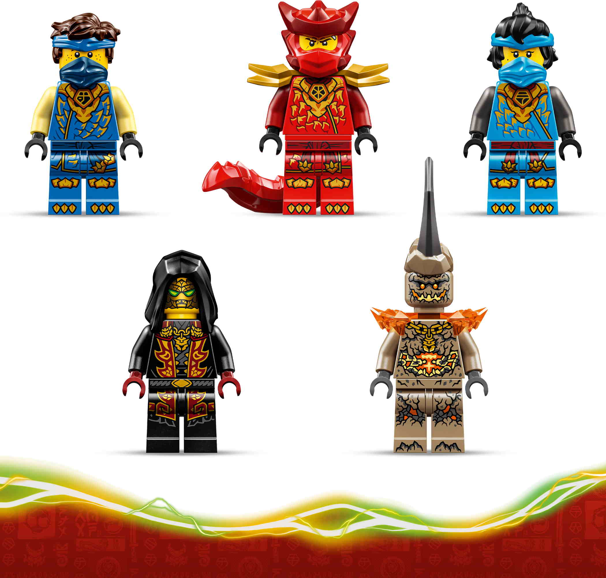 - 5 NINJAGO® MINIFIGUREN: Für Duelle zwischen Gut und Böse beinhaltet das Ninja-Spielset die Helden Jay, Nya und Drachen-Form-Kai sowie das böse Erdmonster und den Loyalistenanführer