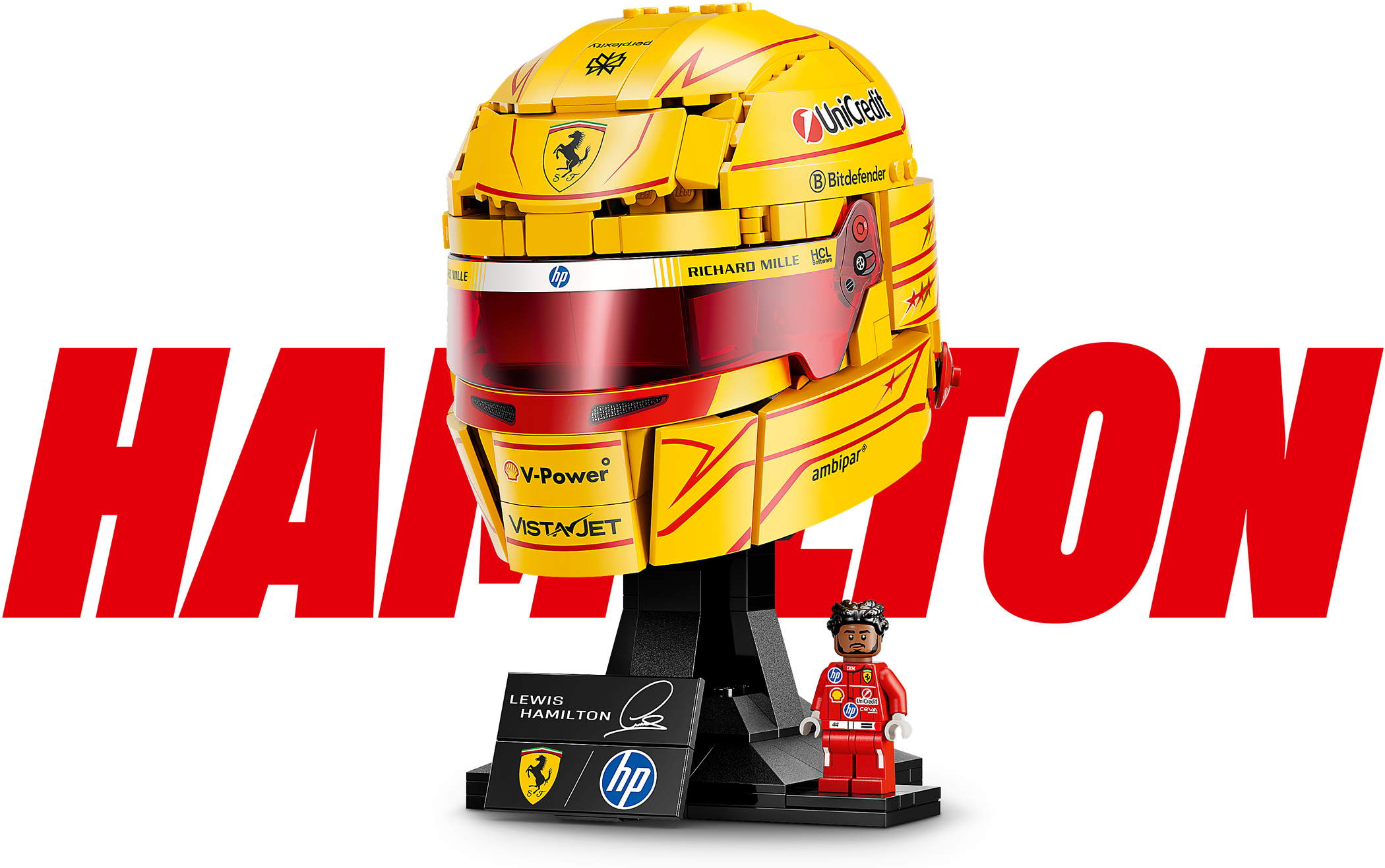 - LEGO® F1® HELM: LEGO Editions Scuderia Ferrari HP Lewis Hamilton Helm (43022) lässt Jugendliche und Fans ab 14 Jahren kreativ werden und ein tolles Formel 1® Erinnerungsstück bauen