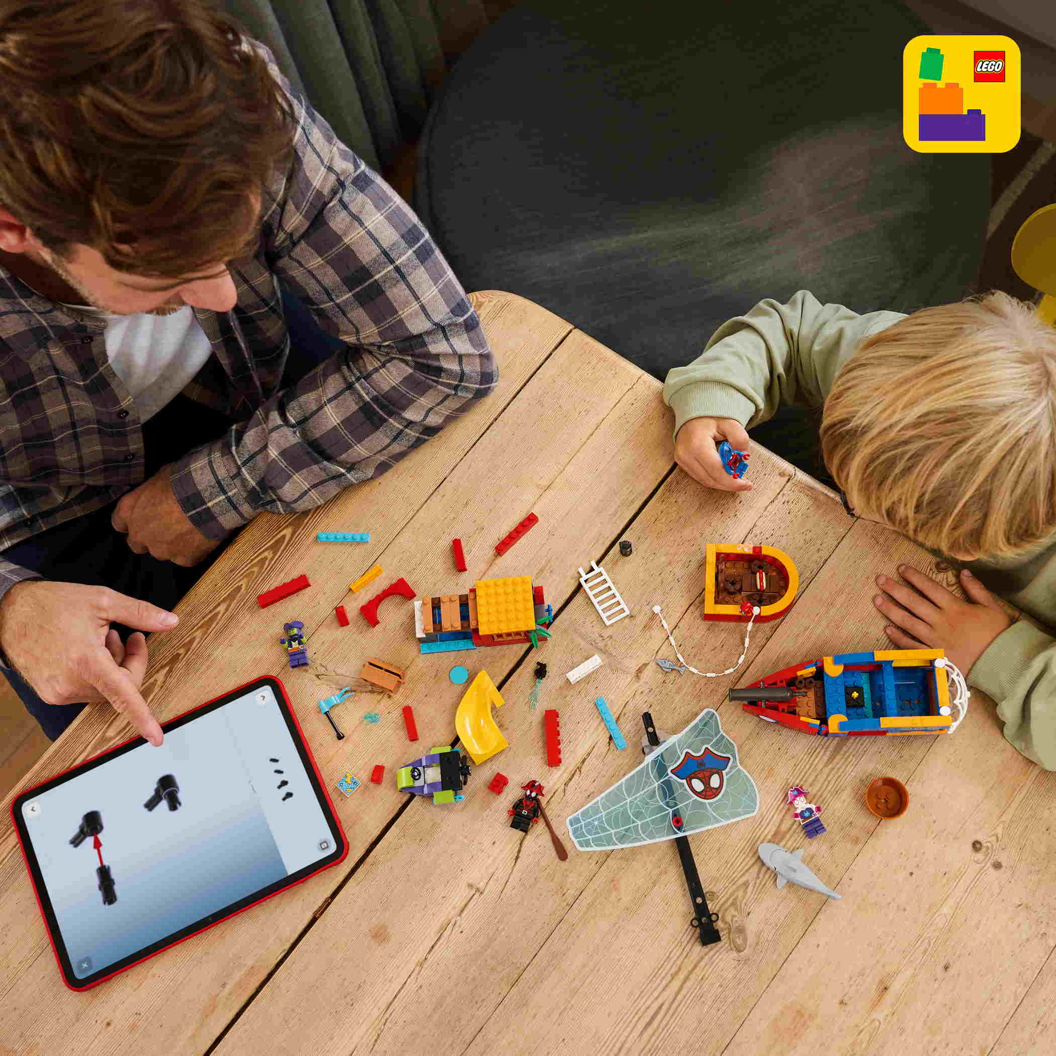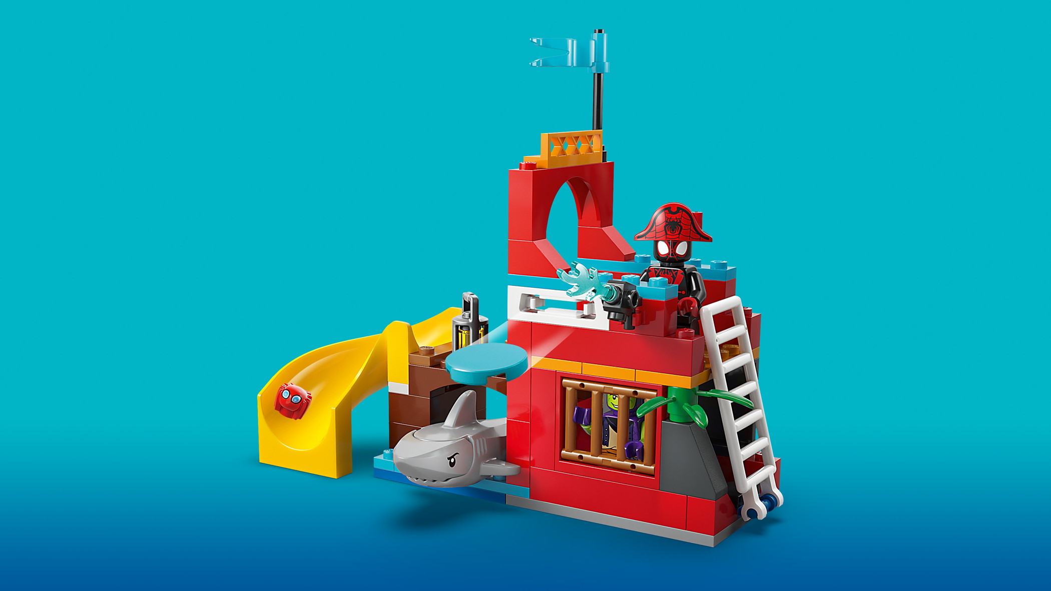 - 4 MINIFIGUREN: Erlebe jede Menge Actionspaß mit Spidey, Ghost-Spider, Miles „Spin“ Morales, Green Goblin und Trace-E auf dem Piratenschiff, auf Spider Island und auf den beiden kleineren Booten aus diesem Bauset