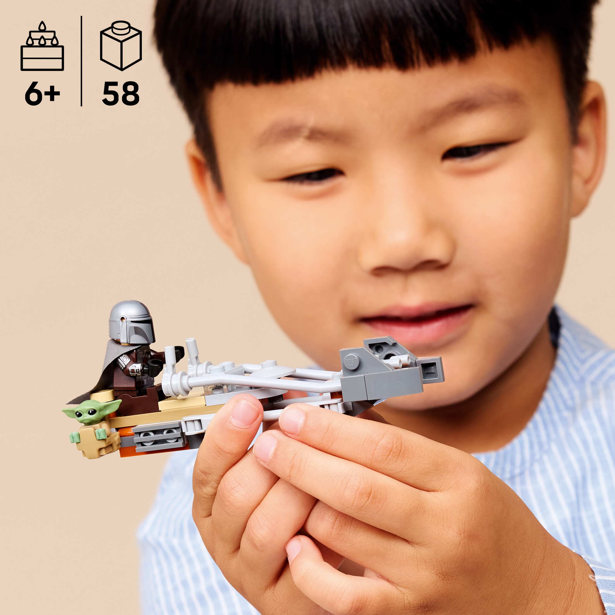- Freu dich darauf, mit diesem coolen Bau- und Spielset spannende Szenen auf Tatooine aus der 1. Staffel von Star Wars: The Mandalorian nachzustellen. Der Mandalorianer und Grogu auf ihrem Speeder Bike™ (75436) ist ein cooles kleines Geschenk aus LEGO® Steinen für Kinder ab 6 Jahren. Setz den Mandalorianer auf den Minifigur-Fahrersitz und steck Grogu in die Satteltasche an der Seite. Befestige das Blastergewehr des Mandalorianers am Heck des Fahrzeugs, damit es für jedes Actionabenteuer griffbereit ist.Das Bauspielzeug lässt sich rasch zusammenstecken, damit der Actionspaß sofort beginnen kann. Das Set weckt die Fantasie der Kinder, wenn sie die legendären Star Wars™ Charaktere in eigene Fantasy-Abenteuer schicken.Die LEGO Builder App mit verständlichen digitalen Bauanleitungen lässt Kinder selbstbewusst bauen, 3D-Modelle vergrößern und drehen und anschauen, wie weit sie mit ihrem Modell schon sind. Das Set besteht aus 58 Teilen.