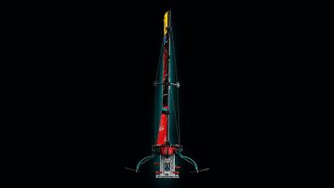 - Pneumatikfunktion: Benutze die Pneumatikfunktion dieser LEGO® Technic Interpretation, um die Kipparme der Hydrofoils hochzupumpen. Auf der echten Rennjacht übernimmt ein Hydrauliksystem das Kippen der Arme