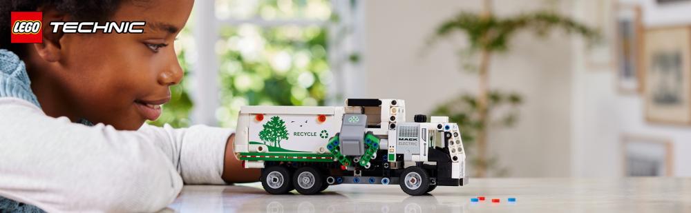- LEGO® Technic Mack® LR Electric Müllwagen hilft dir, für eine saubere Stadt zu sorgen. Der echte Mack Müllwagen hat einen Elektroantrieb, um eine umweltschonendere Müllabholung zu ermöglichen. Möchtest du dieses Modell mal ausprobieren? Dann öffnedie Türen, um in die Fahrerkabine zu steigen und den Müllwagen in die richtige Position zu lenken. Benutze den Seitenlader, um die Mülltonnen zu greifen, hochzuheben und zu entleeren, bevor es zur nächsten Sammelstelle weitergeht.