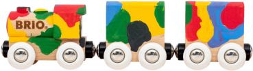 Mit dem Holzzug zum Anmalen kann eine ganz persönliche Spielzeugeisenbahn gestaltet werden. Dieser Holzzug ist für jeden kleinen Künstler wie eine leere Leinwand. Mit dem Pinsel und fünf wasserbasierten Acrylfarben können die Lieblingsfarben gemischt und ein eigenes Zugdesign erstellt werden. Bei einem Fehler oder neuer Inspiration kann die getrocknete Farbe einfach übermalt werden. Ob unsere klassischen BRIO-Designs oder etwas völlig Neues – die Gestaltung liegt ganz bei den kleinen Künstlern.