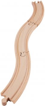 Für die Erweiterung der Schienenbahn gibt es von Eichhorn das Schienenset, bestehend aus 10 Teilen: 4 große Kurvenschienen, 4 lange und 2 kurze gerade Schienen.
