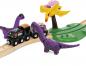 Dieses 21-teilige Zugset umfasst einen Dinosaurier-Zug mit zwei Waggons, mehrere Landschaftselemente sowie Gleisverläufe auf verschiedenen Ebenen.