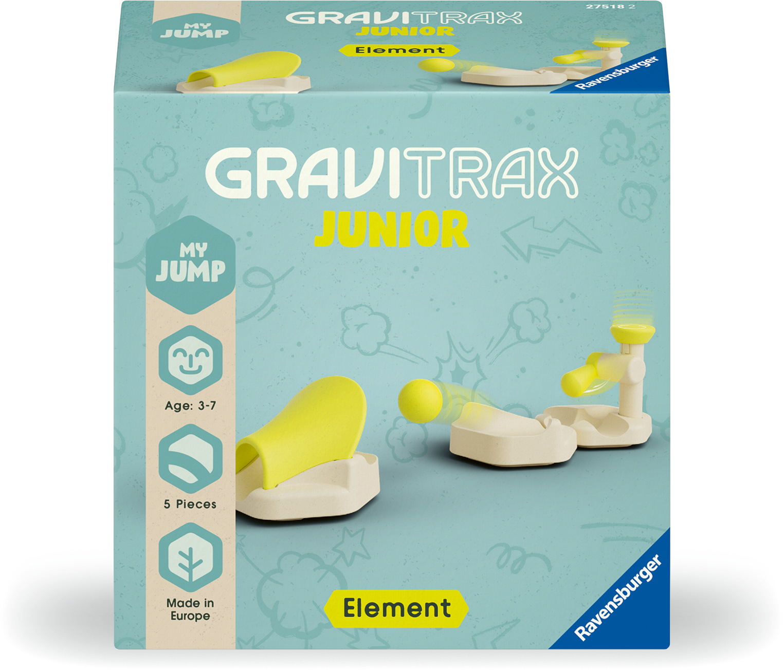 Das GraviTrax Junior Element Jump kann mit Extension-Sets, Starter-Sets oder mit anderen Elements in eine Murmelbahnwelt verwandelt werden. Alle GraviTrax Junior Sets sind miteinander kombinierbar und bestehen überwiegend aus nachwachsenden Rohstoffen. Bei GraviTrax Junior werden altersgerechte Lerninhalte thematisiert. Motorische Fähigkeiten und räumliches Denken werden durch das freie Konzipieren der Kugelbahnen gefördert. Durch das Erforschen des Rollverhaltens der Kugeln wird das Prinzip von Ursache und Wirkung hautnah erlebt.