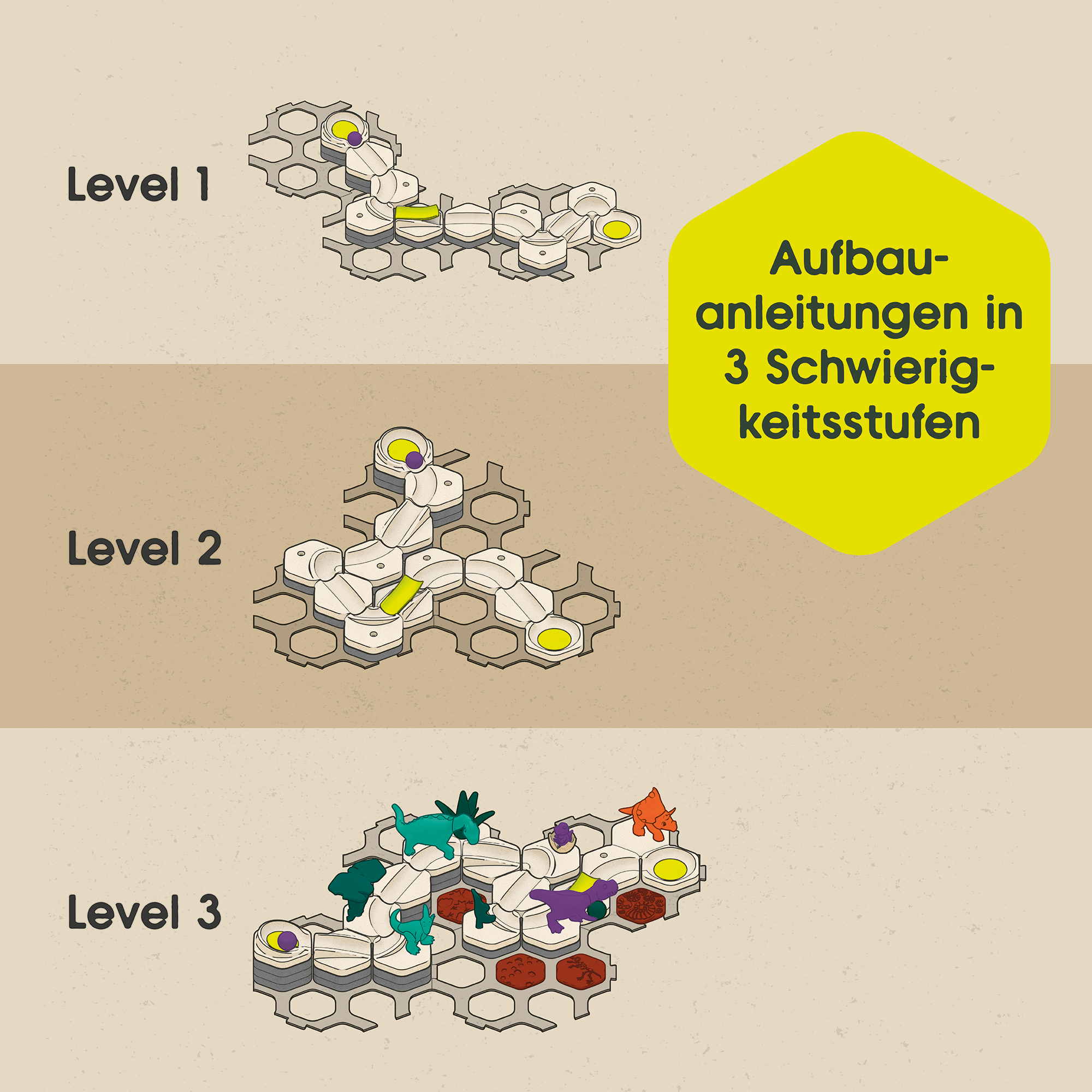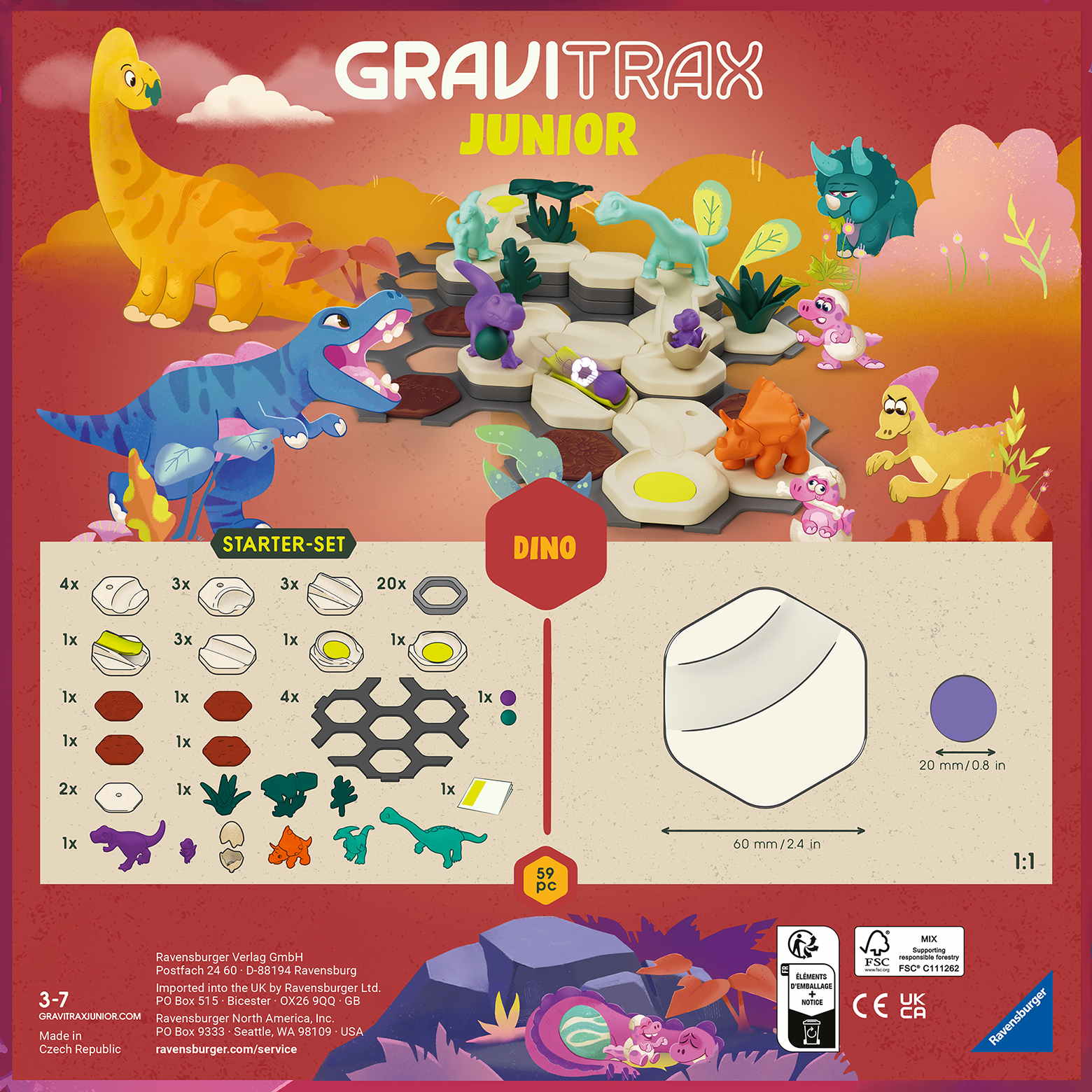 GraviTrax Junior ist ein kreatives Kugelbahnsystem für Kinder von 3 bis 7 Jahren. Kinder bauen eigene Kugelbahnen und gestalten durch die passende Deko ihre eigene Dinosaurier Themenwelt – ein geeignetes Kinderspielzeug ab 3 Jahre