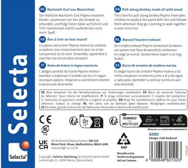 Der fröhliche Nachziehesel Pepino motiviert Kinder, zusammen mit ihm die Umwelt zu erkunden, und folgt ihnen dabei auf Schritt und Tritt. Gemeinsam macht Laufenlernen noch mehr Spaß.