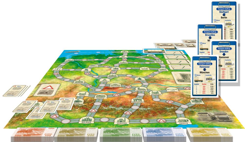 Wenn aus braven Familienvätern plötzlich scharf kalkulierende Spediteure werden und kleine Mädchen problemlos große Trucks steuern, dann wird AUF ACHSE gespielt! Brummis, Frachten und Moneten beherrschen das Transport-Gewerbe zwischen Flensburg und Verona. Der Wettbewerb der Spediteure erfordert ausgeklügelte Routenplanung, spannungsgeladene Preiskämpfe und optimale Ausnutzung der Lkw-Frachträume. Immer wieder treten neue Ereignisse auf, die den Fahrern das Leben erschweren oder auch erleichtern können. Vorausschauende Planung und - wie so oft im Leben - eine Portion Glück bringen den erhofften Vorsprung in diesem spannenden Familienspiel.