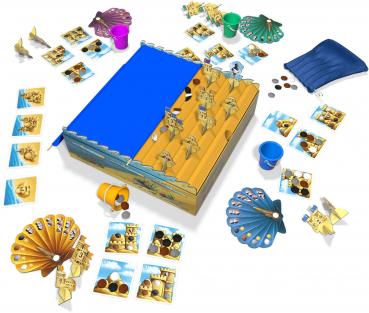 Muscheln und Sand gibt es in den dreidimensional gestalteten Sandrinnen viele. Wer im Wettbewerb mit seinen Mitspielern genügend davon einsammelt, kann insgesamt vier Sandburgen errichten. Diese unterscheiden sich in Größe, Wert und benötigtem Baumaterial. Die einträglichsten Burgen sind am Ende diejenigen, die der nahenden Flut um Haaresbreite entgehen.