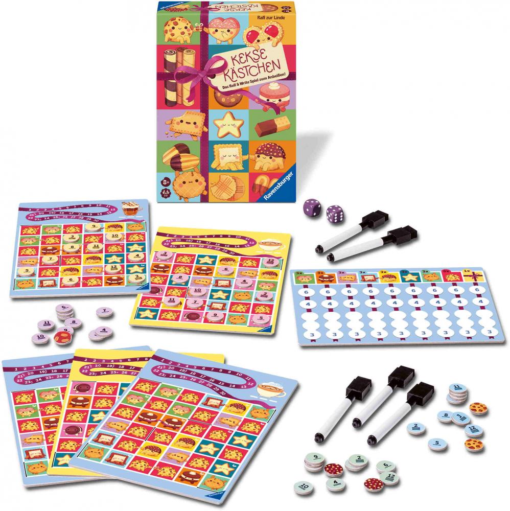 Einfache Regeln, kurzweiliger Spielspaß und ein zuckersüßes Thema - all das bietet das knackige Roll & Write Spiel "Keksekästchen". Das Spiel ist eine moderne Umsetzung des beliebten Klassikers "Käsekästchen", bekannt aus Schulzeiten. In diesem spannenden Spiel ab 8 Jahren sind Würfelglück und Cleverness gefragt, um möglichst rasch Wände auf dem eigenen Spielplan einzuzeichnen und die wertvollsten Kekssorten anzukreuzen.