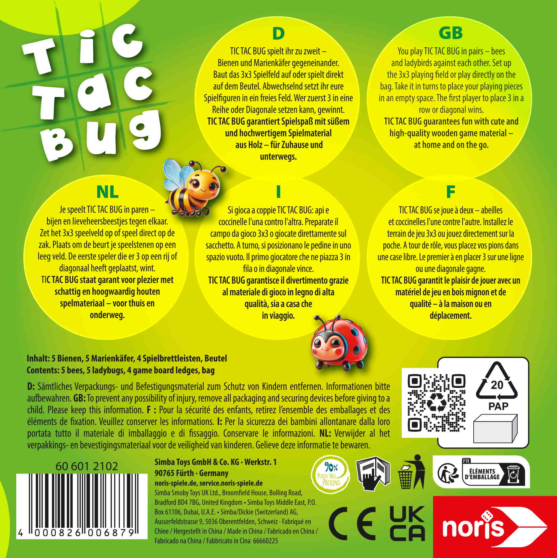 Mit Tic Tac Bug hält der beliebte Klassiker Einzug ins Kinderzimmer - kindgerecht, hochwertig und mit ganz besonderem Charme. Statt Kreise und Kreuze treten niedliche Marienkäfer gegen fröhliche Bienchen an. Wer bekommt die erste Dreierreihe?