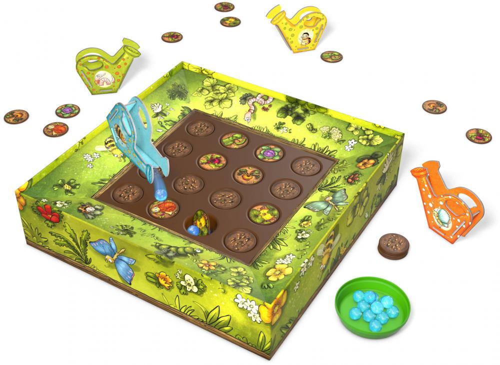 Was man gießt, das sprießt! Tropfen für Tropfen kommt das junge Gemüse ans Sonnenlicht, wenn eifrige Gärtner zur Gießkanne greifen. Spannend kullern die Wassertropfen über das Beet. Wo sie versickern, bewegt sich der Boden: Karotten, Kraut und Kürbisse sind zu sehen, weil sie sich aus der Erde drehen. Das begeistert natürlich auch gefräßige Schnecken, die gleich mal bei den Gurken vorbeischauen. Bei der Ernte eine Gießkannenspitze voraus ist, wer schon vorher weiß, wo welches Gemüse wachsen wird. Nicht nur Kinderaugen verblüfft der unglaubliche Dreheffekt, der das bewässerte Gemüse aus dem Boden sprießen lässt. Beethupferl zaubert ein aufregendes Naturerlebnis in jedes Kinderzimmer und serviert dabei eine üppige Ernte aus Spannung und Spaß.